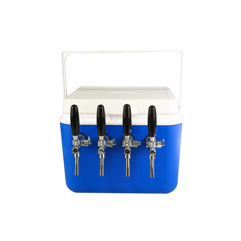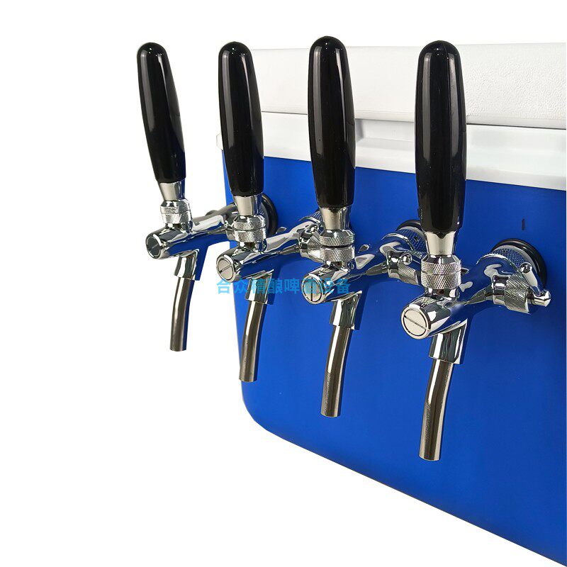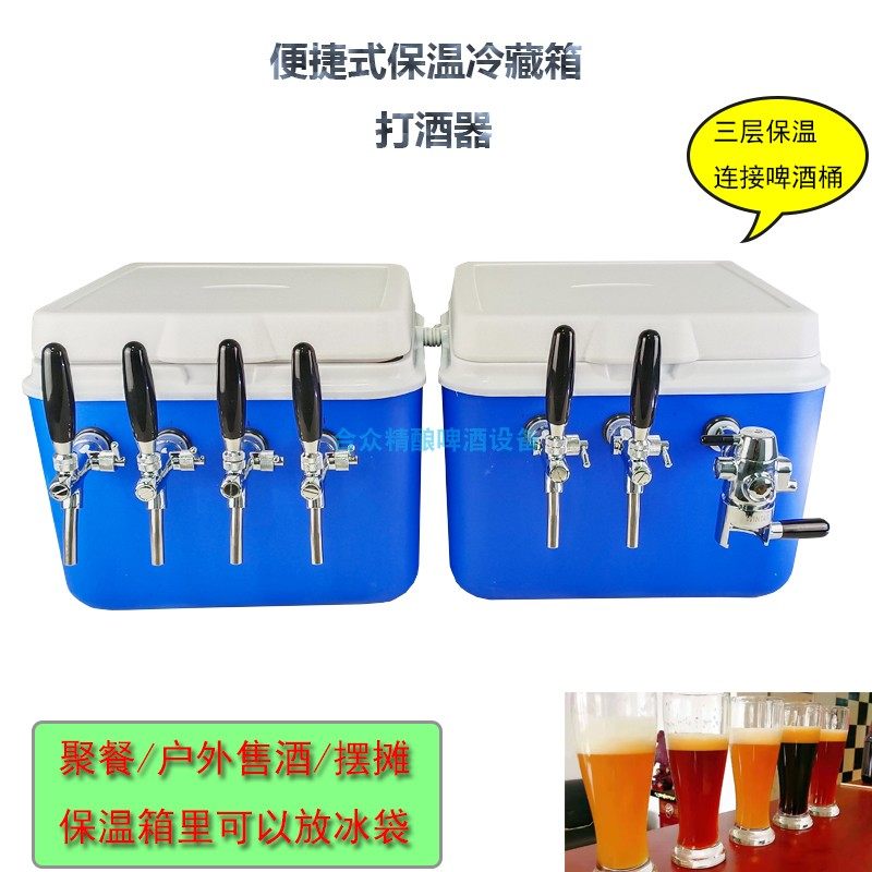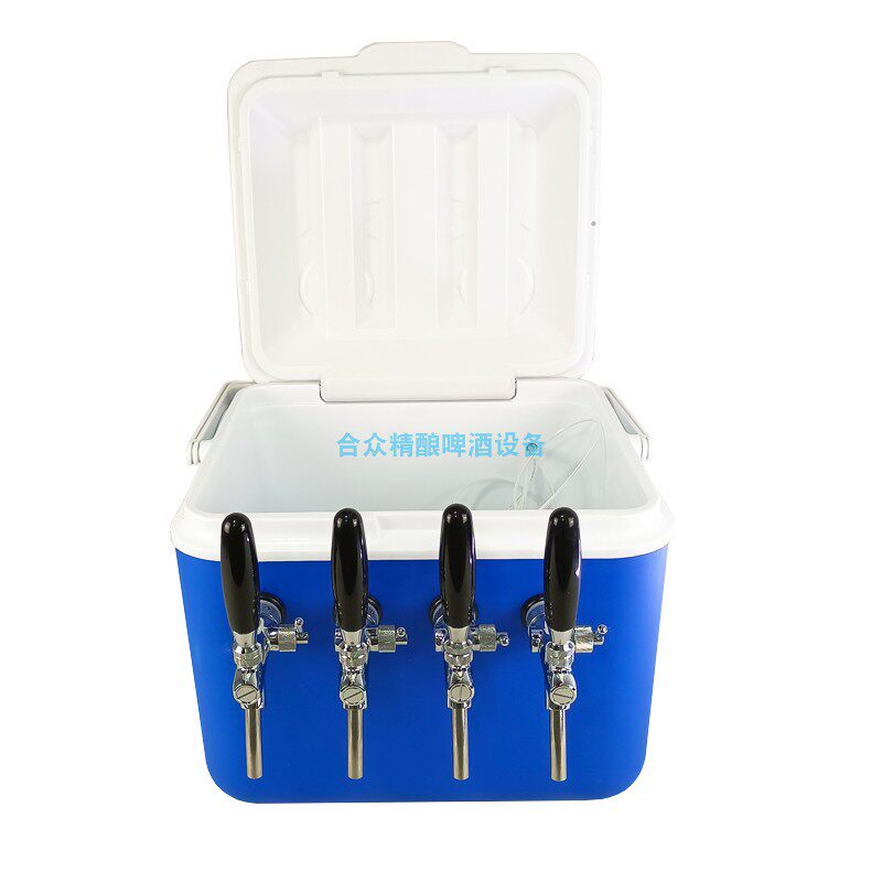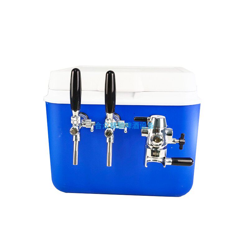 5:在保溫箱中加入冰塊與水,用二氧化碳將桶里的啤酒打出來再通過冰冷的管使酒液瞬間冷卻至試飲溫度