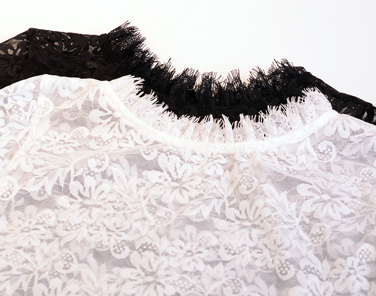 此寶貝的最大亮點就是領子和袖子,領子采用小圓領睫毛花邊設計,穿著時剛好貼到脖子處,搭配衣服,或背心裙等等,露出漂亮的睫毛花邊領,特別顯氣質。小燈籠袖設計,更顯手臂纖細,穿著舒適度也更高哦!