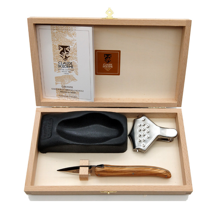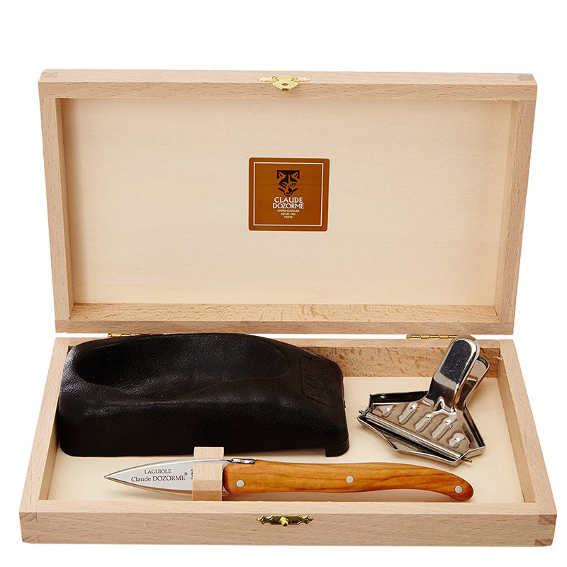 Features:Made in France.法國制造Blade made from high grade stainless steel.高等級不銹鋼Handle made from olive wood.橄欖木手柄Triple riveted.Presented in a wooden Claude Dozorme gift case.Claude Dozorme’s trademark Bee features on the tang.Hand wash recommended.Set Includes:18cm Oyster Knife,生蠔刀尺寸14.5 x 6.5 x 3cm Rubber Oyster Holder生蠔架尺寸8.5cm Stainless Steel Lemon Squeezer檸檬夾尺寸