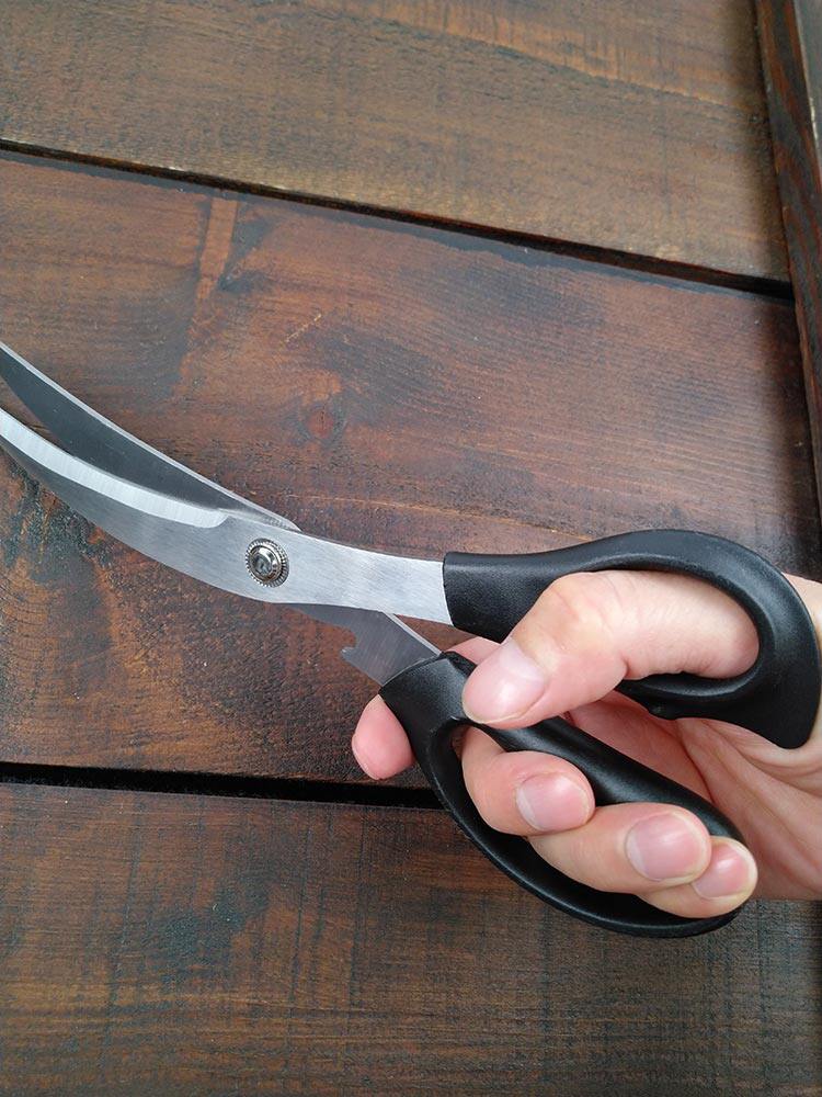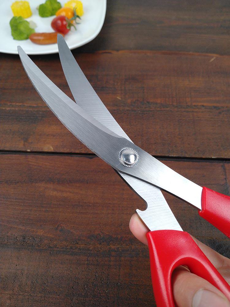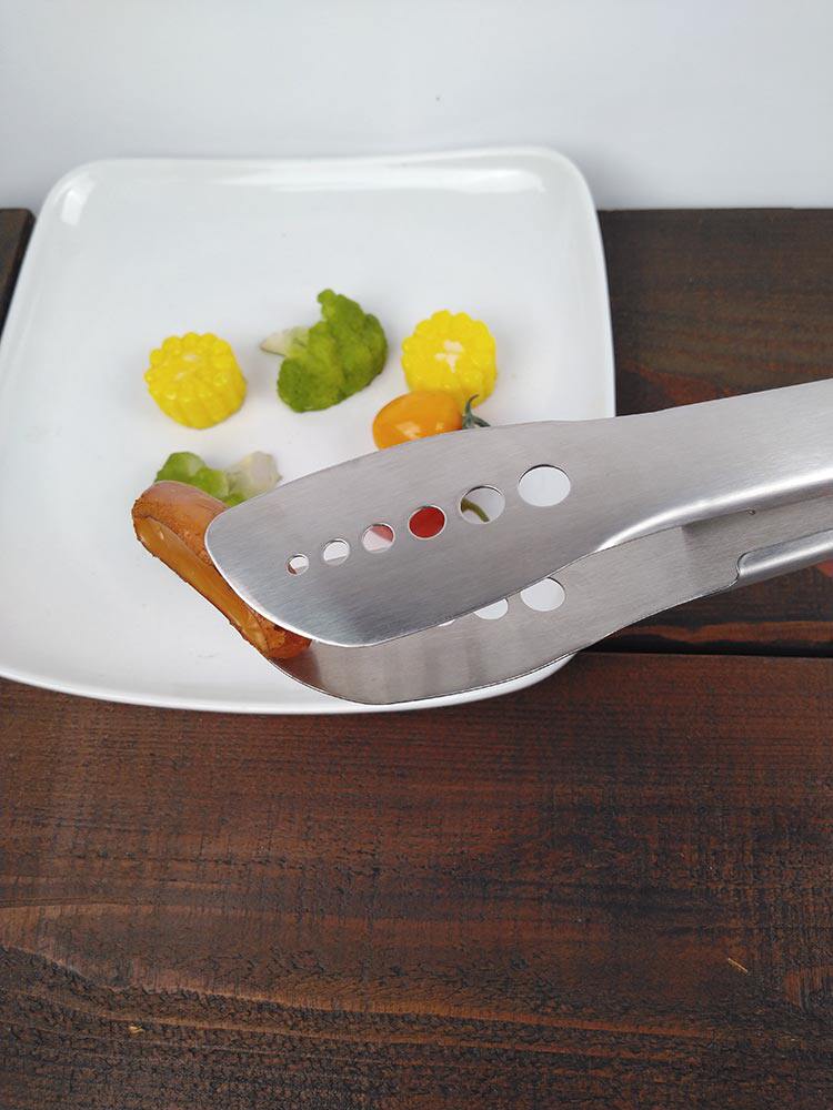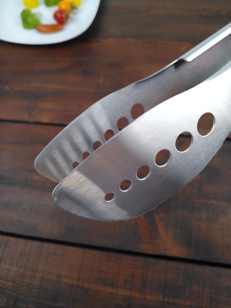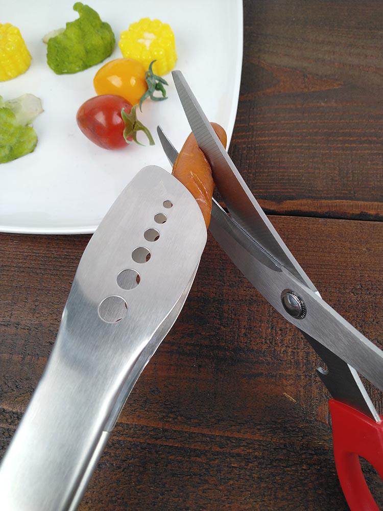 烤熟的肉片比較大的時候,用剪刀將快烤熟的肉剪短,就能很優雅地享受一頓美味的烤肉啦。彎頭剪刀更方便剪。全不銹鋼烤肉夾也是能更好的從鐵板上或者烤爐的火上把肉夾起來,不懼熱不懼火,夾起過程中再用剪刀剪開即可。