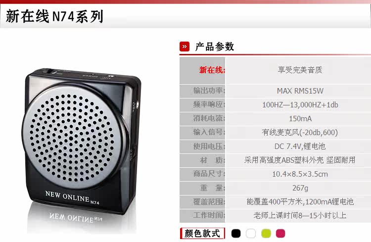 注意:N74沒有U盤插口和插卡功能。是單純的擴音器。