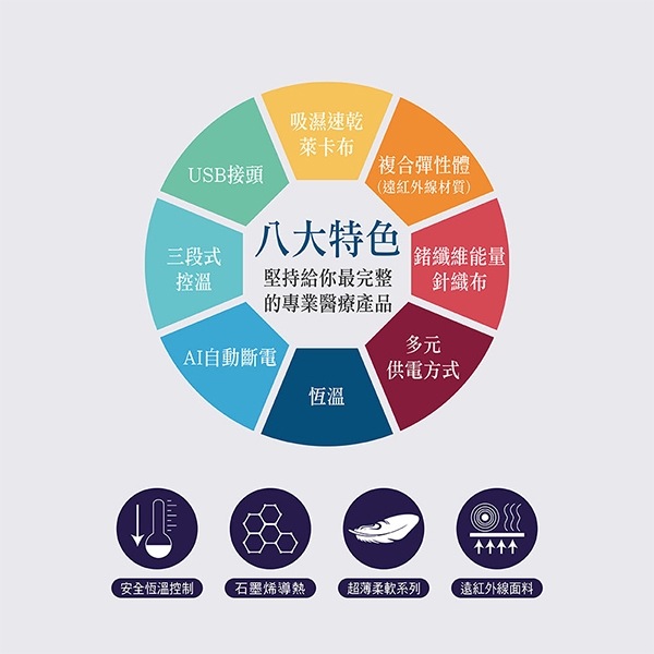 材質:石墨烯、鍺纖維能量針織布、萊卡布