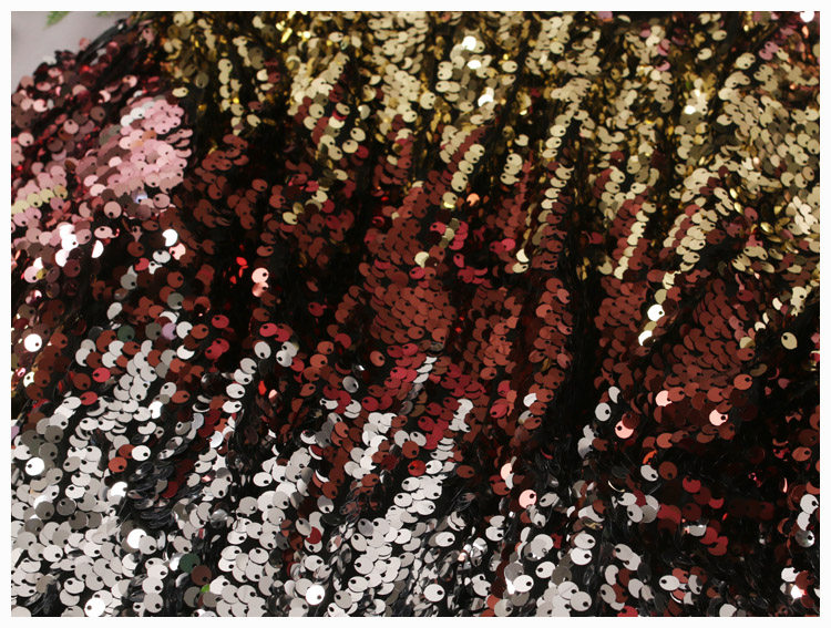 閃金色亮片的主色是由金黃色,咖啡色,銀色這3種顏色組成的,每一件裁的亮片顏色位置不同,