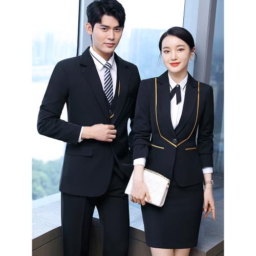 黑色西服套裝女春秋時尚氣質酒店前臺收銀經理工作服高端西裝外套