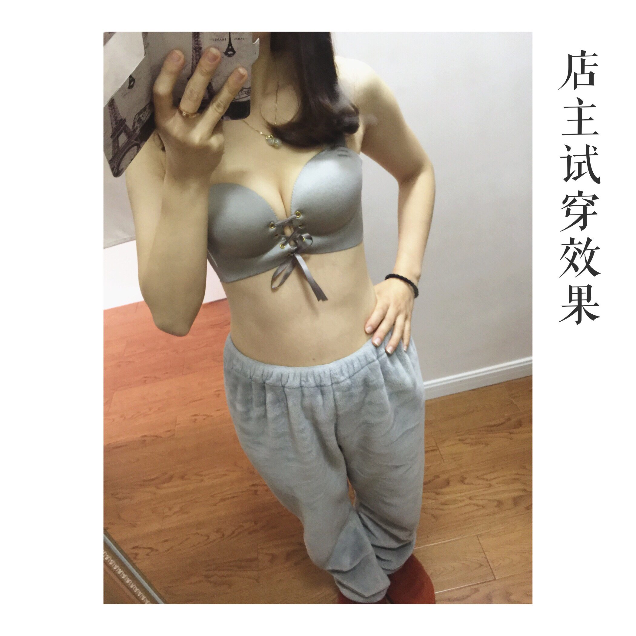穿這款拉繩一拉,聚攏效果非常好,顯得乳房很飽滿哦,乳溝明顯,副乳完全被包進里面。