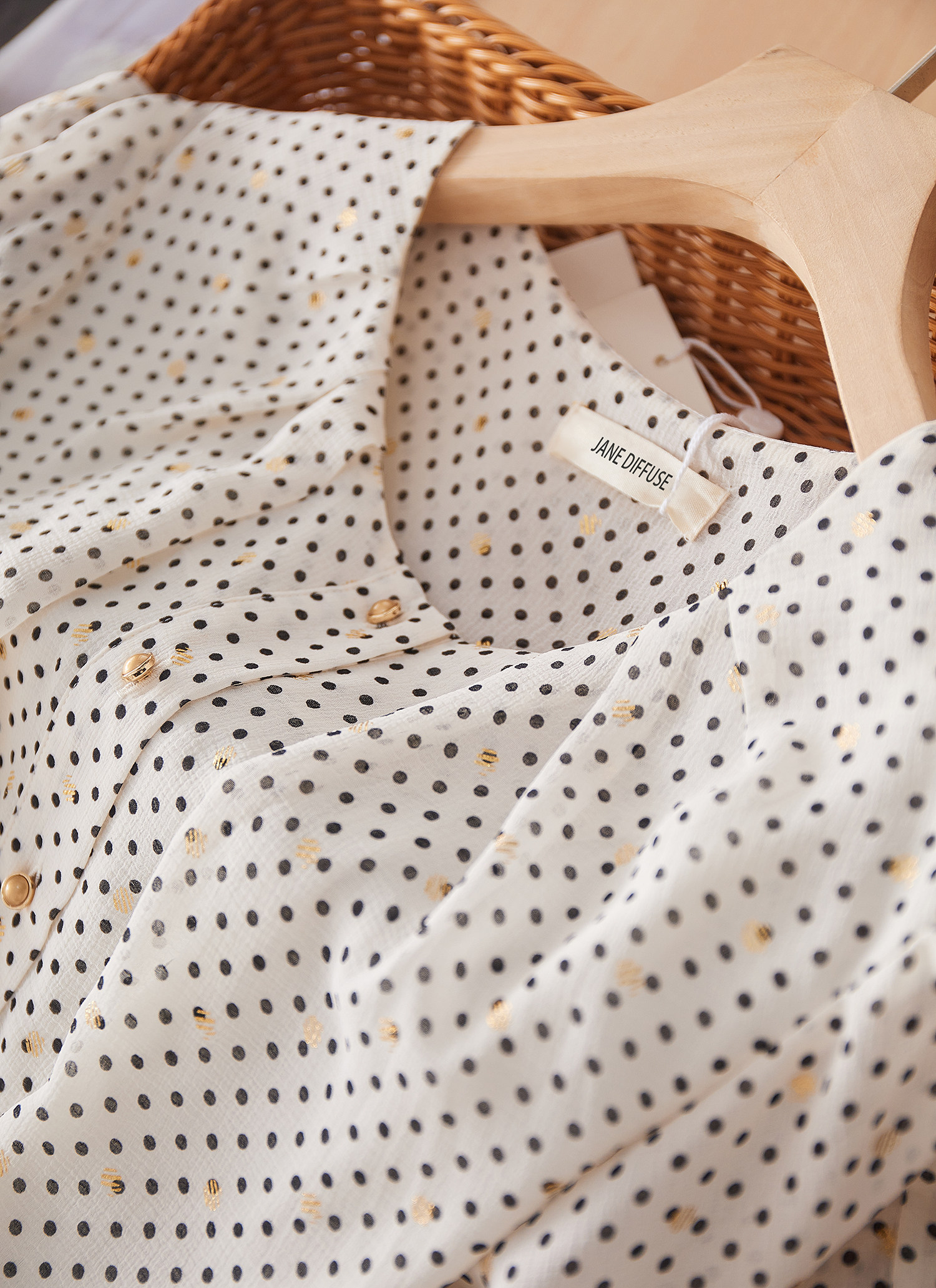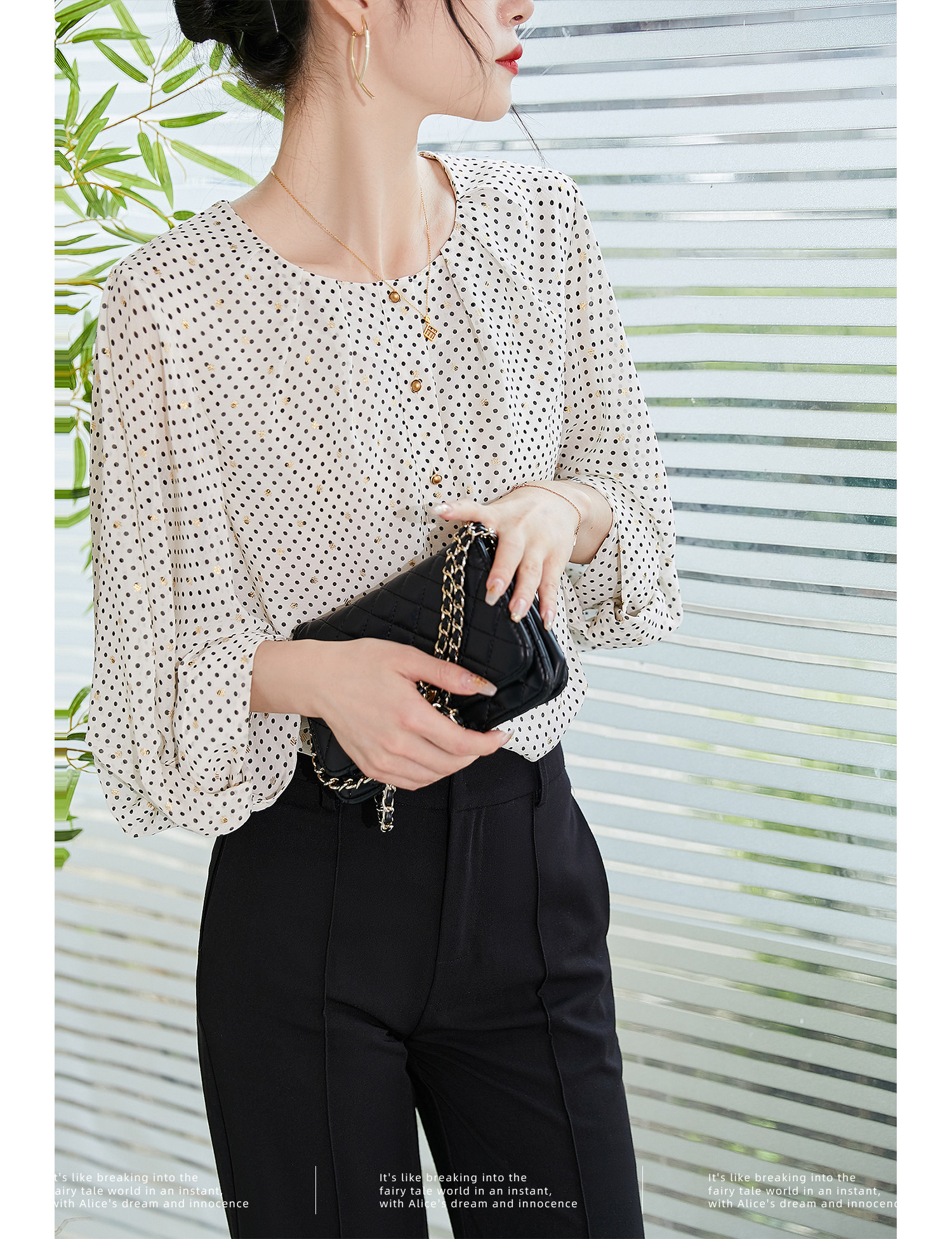 而且用料上蕞具時裝感!波點面料配上重磅燙金工藝打造