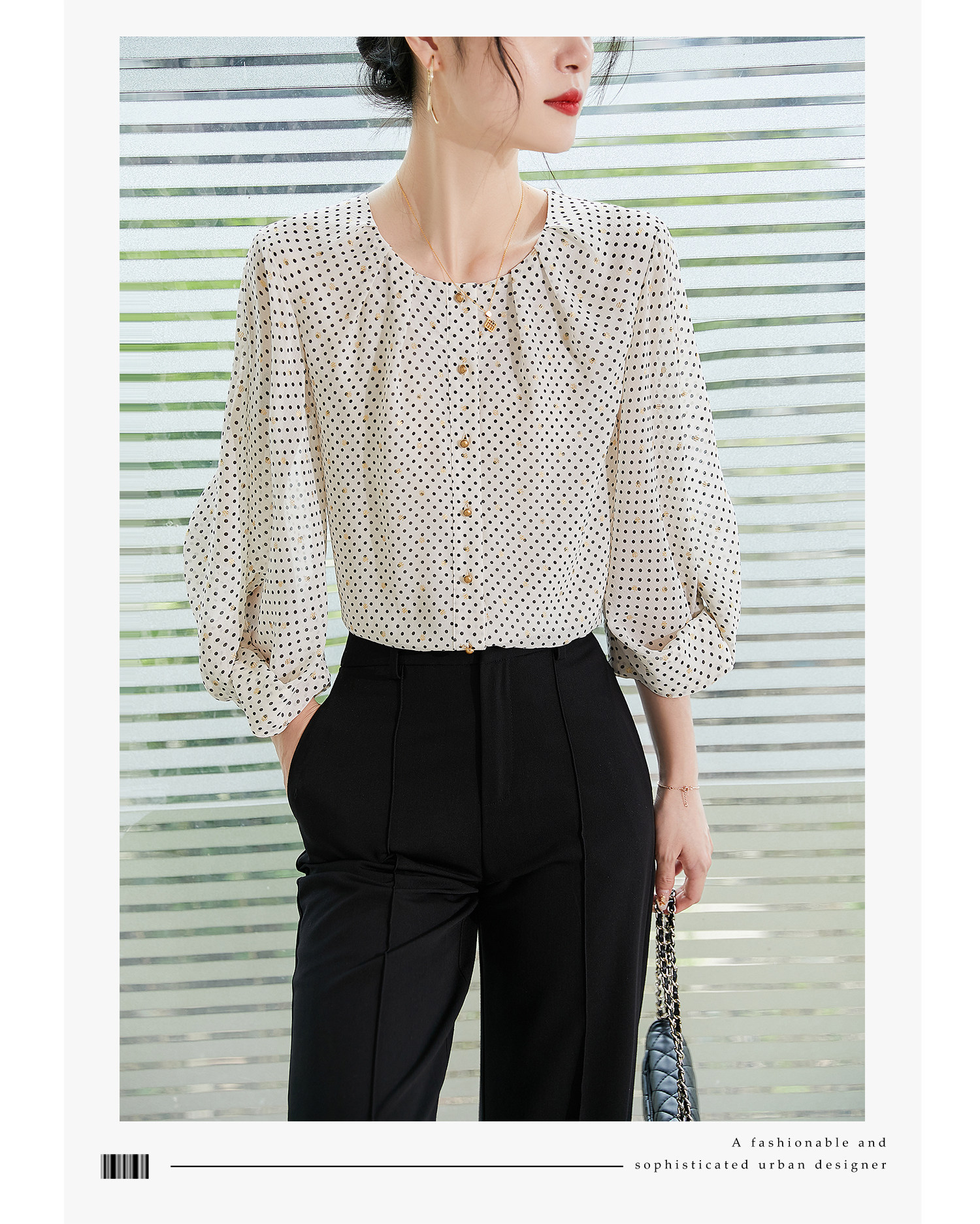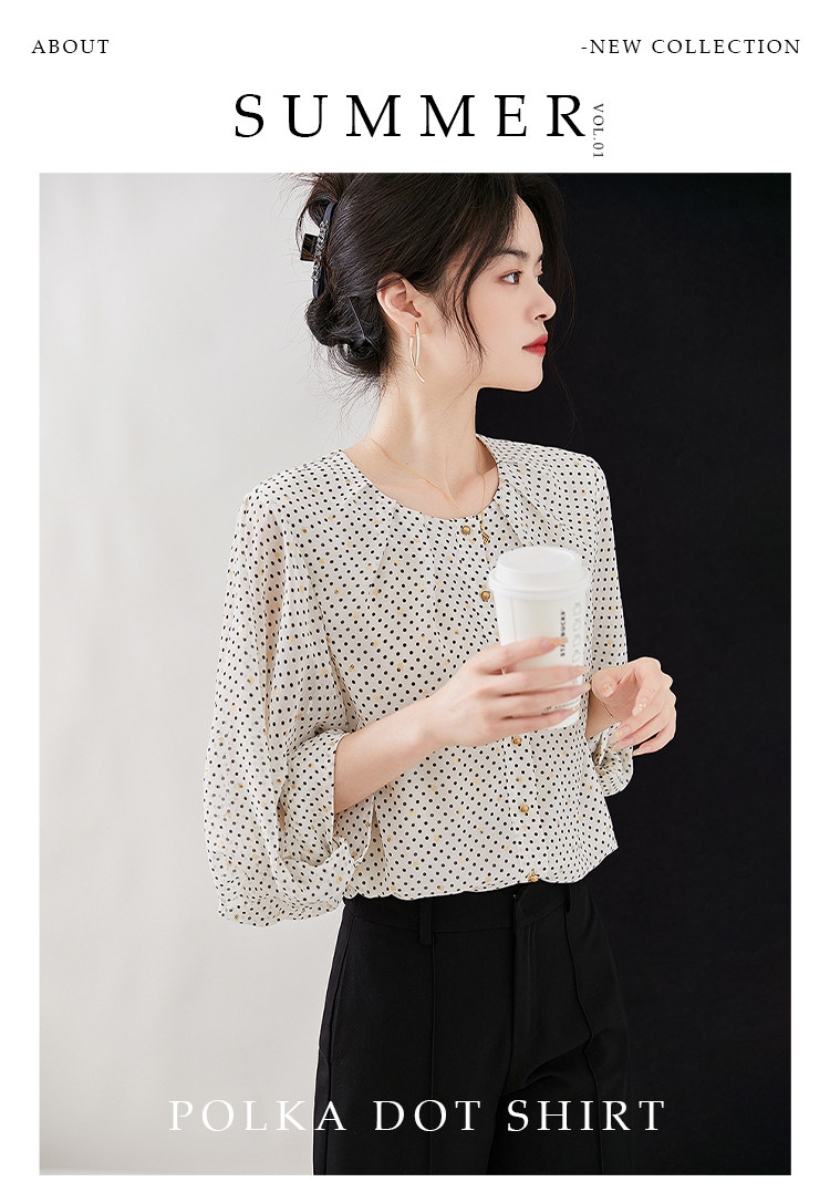 優雅波點遇上經典圓領,輕松營造出法式浪漫氣息