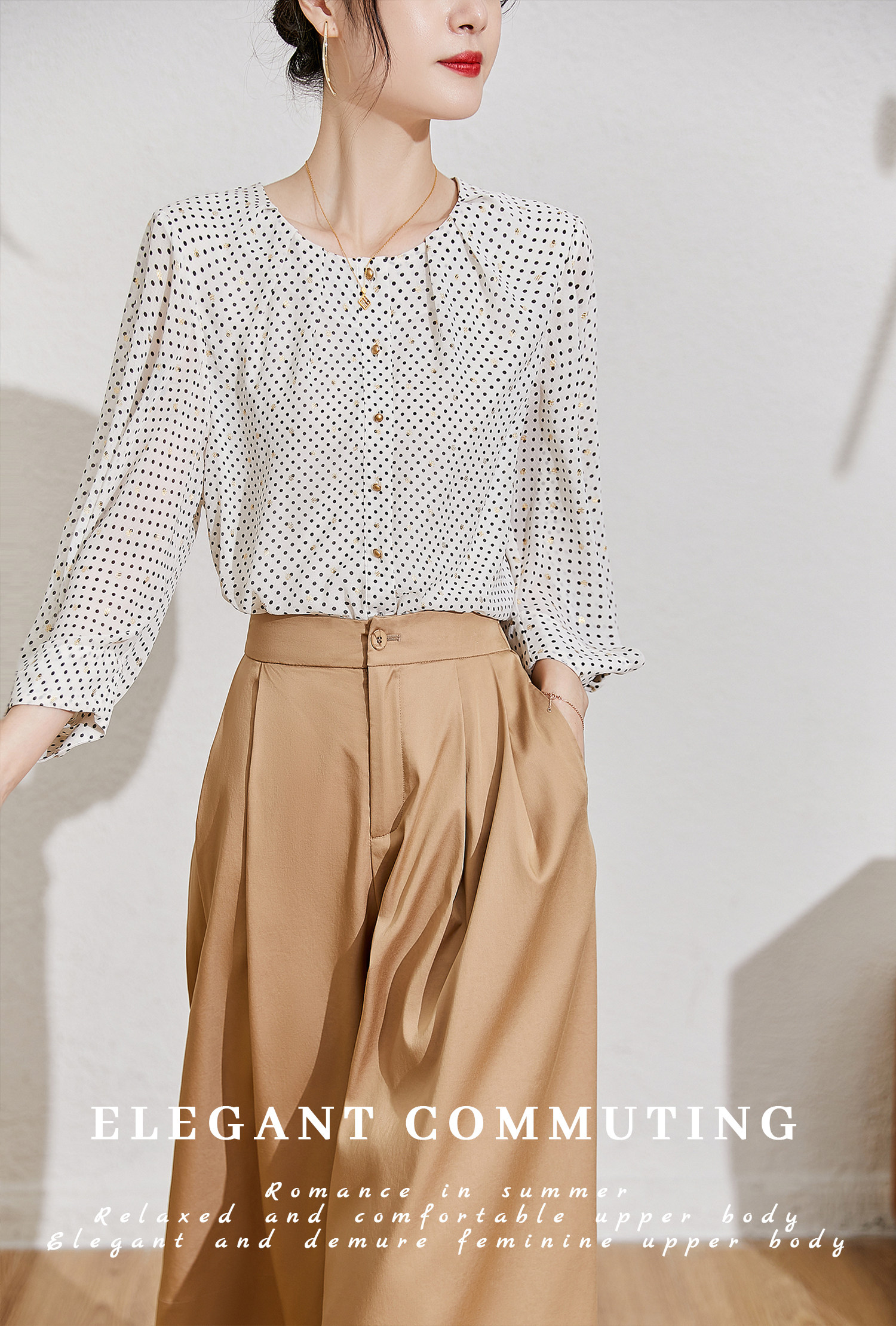自然挺括修飾美化人體曲線,配上波點點綴莄顯律動性