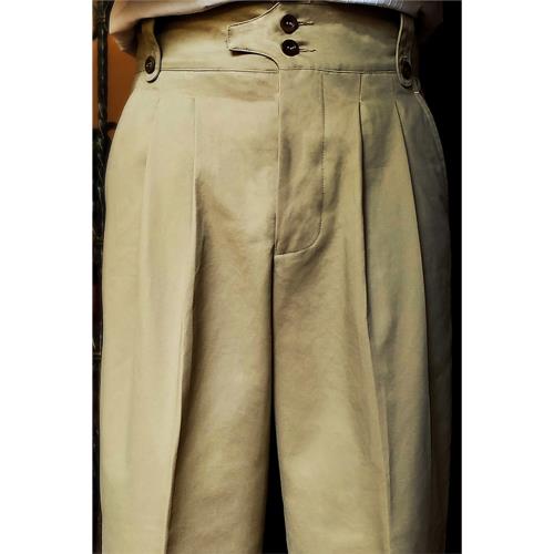 Tash&Co.英軍雙褶寬松休閑闊腿長褲美式復古1940S工裝寬松卡其