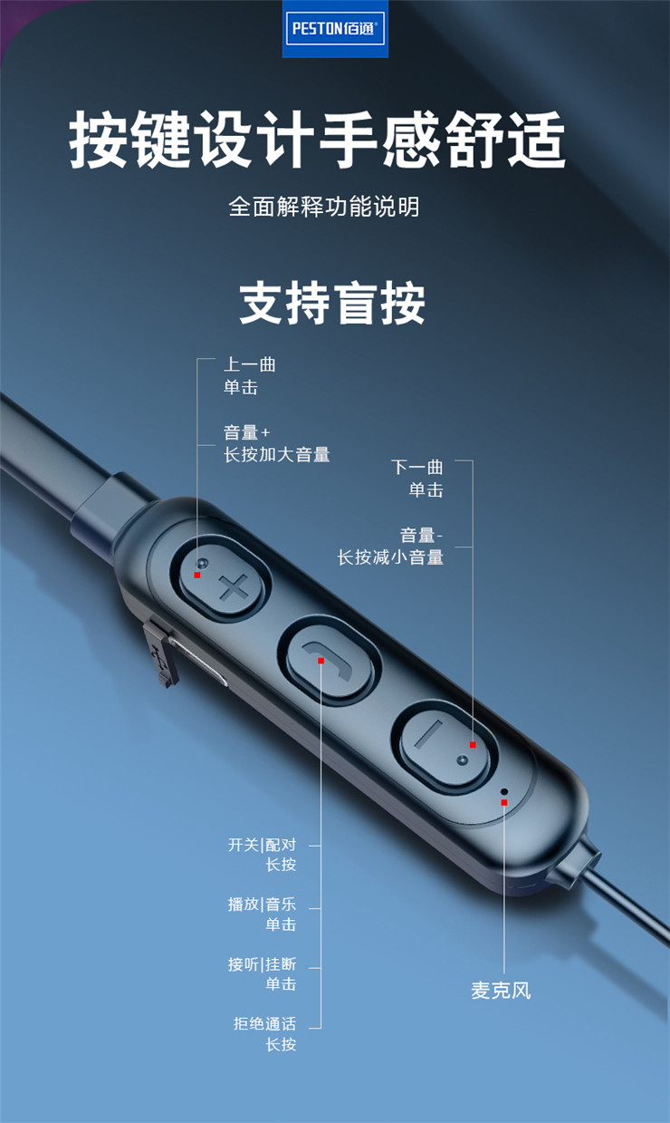 名稱:BT71掛脖式藍牙5.1跑步耳機 型號:LP-BT71 藍牙版本:5.1 傳輸范圍:10米 續航:約8-10H 材質:ABS+PC 防水:IPX級防水 電池容量:120mAh 輸入:5V/1A 產品包裝:盒裝 毛重:64g 產品特點:掛脖式設計,適合跑步運動使用,狂甩不易掉,防塵防汗,藍牙5.1版本,傳輸更快,兼容廣,功耗更低,可持續聽歌約8-10小時,定制專業驅動單元,HiFi及音質體驗,左右立體聲,震撼聽覺,舒適半入耳設計,久戴不痛,120mAh大電池,待機續航更久。 廠家直銷,承接天貓、速賣通OEM/ODM加工訂單 ![]() |
