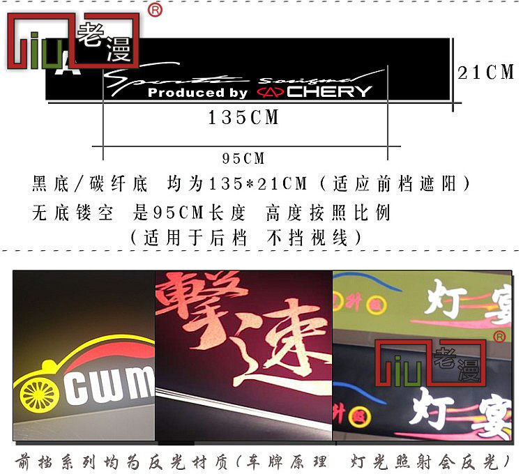 【尺 寸】黑底尺寸,約135cm × 21cm,圖案尺寸為90cm*12cm(粘貼在需要處,壓牢,可根據風擋形狀用美工刀適當裁剪)
