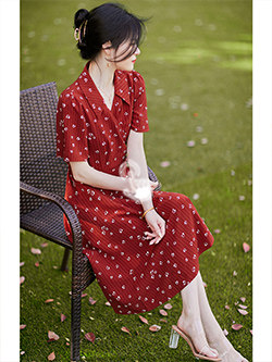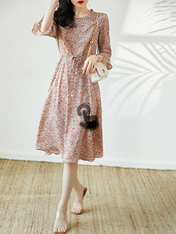 系帶收腰顯瘦大擺中長裙 | 收腰系帶碎花大擺連衣裙 | 梨型身材裙子顯瘦茶歇裙 |