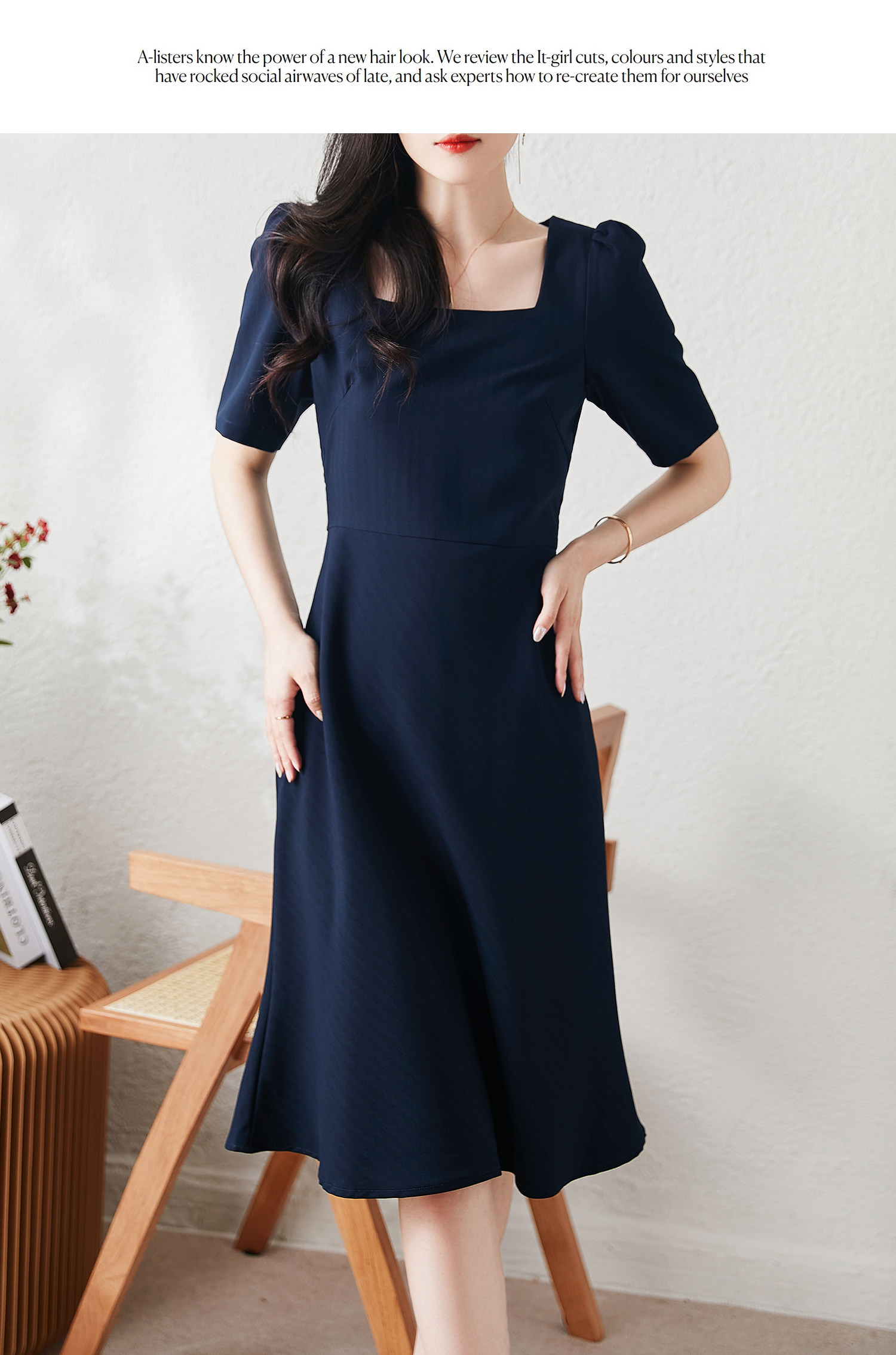 上半身用方領與泡泡袖點綴,配上直身剪裁,莄顯利落干練