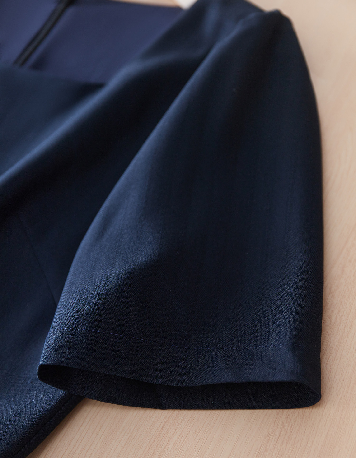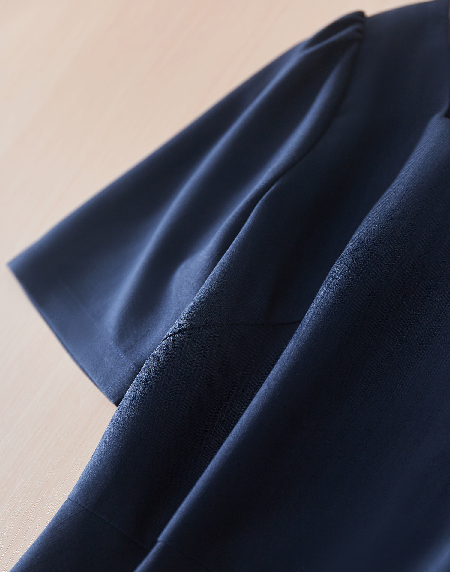 袖身拼接采用篙定西裝抽褶拼接,形成細膩褶皺帶來立體感