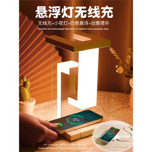 網紅磁懸浮反重力小夜燈床頭手機無線充電氛圍臥室睡眠高級感led