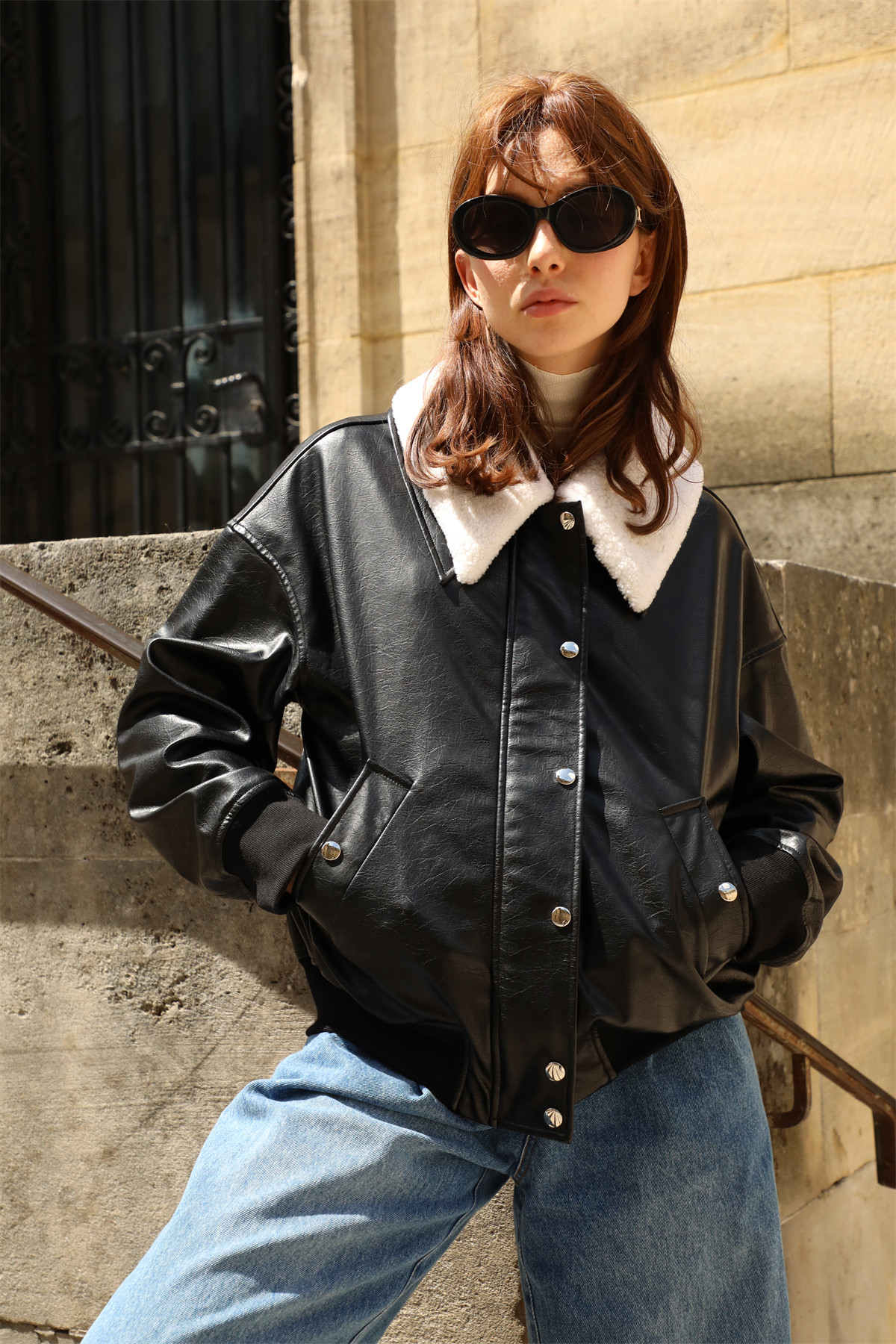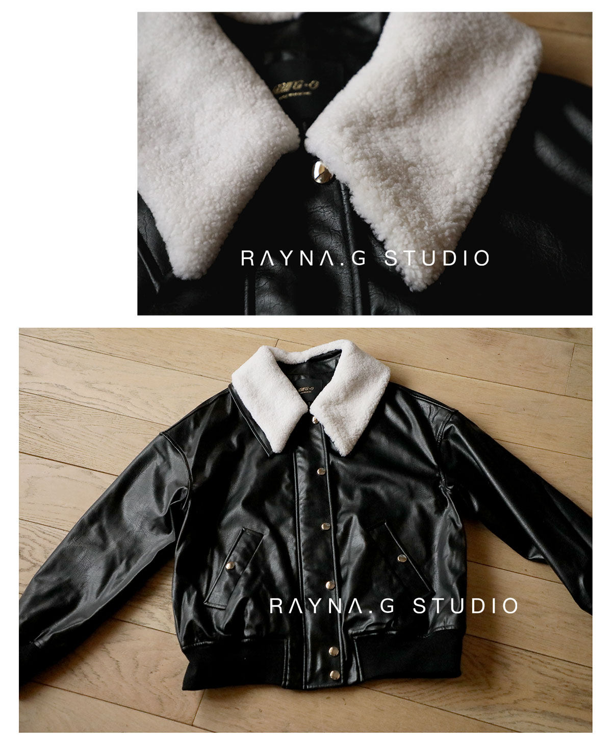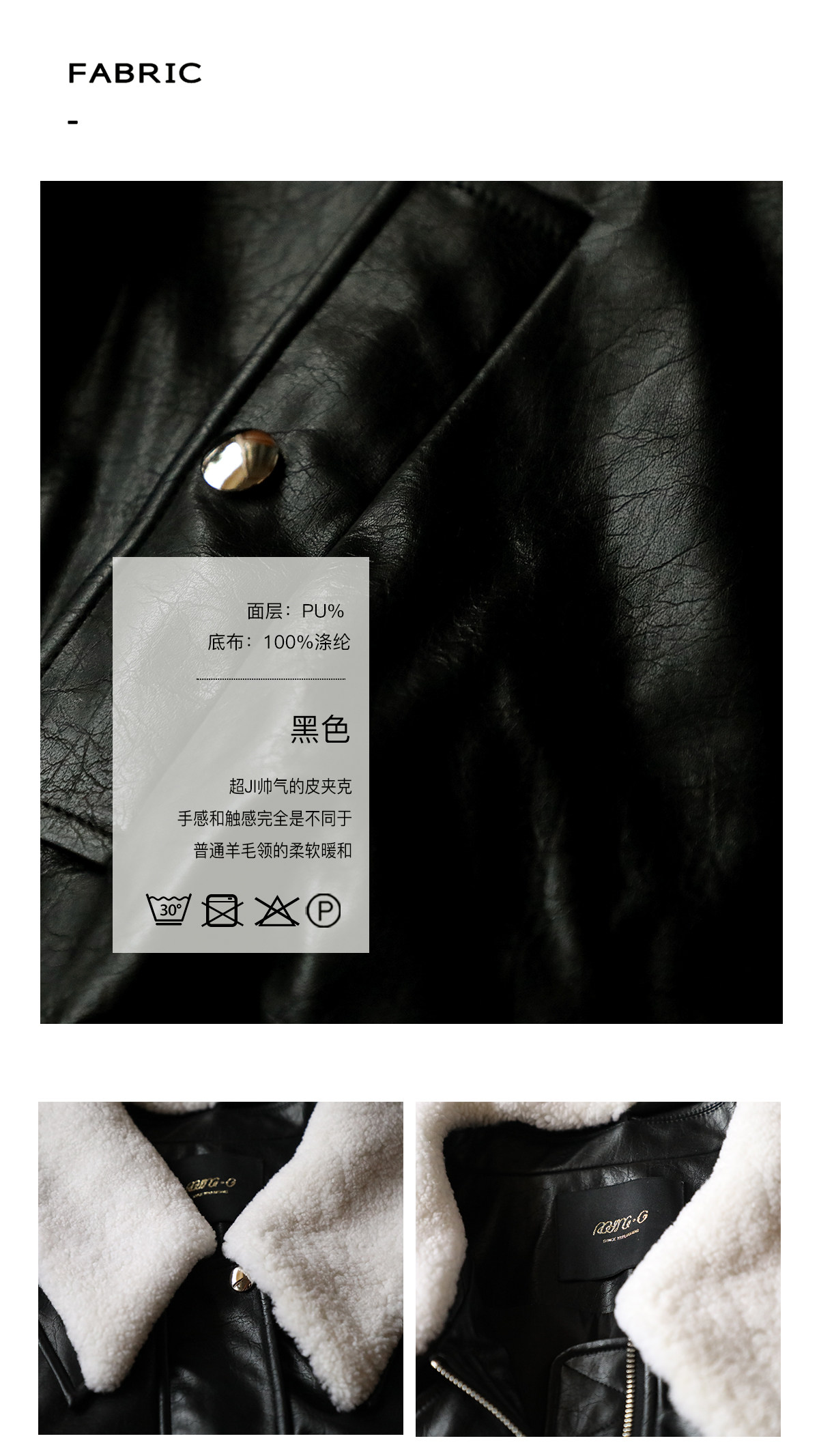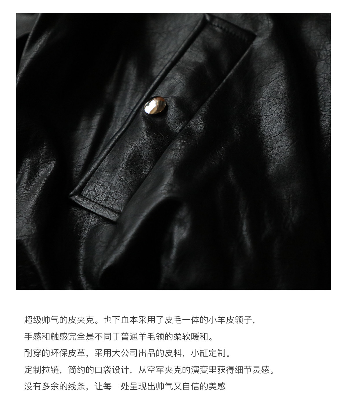 超JI帥氣的皮夾克。也下血本采用了皮毛一體的小羊皮領子,