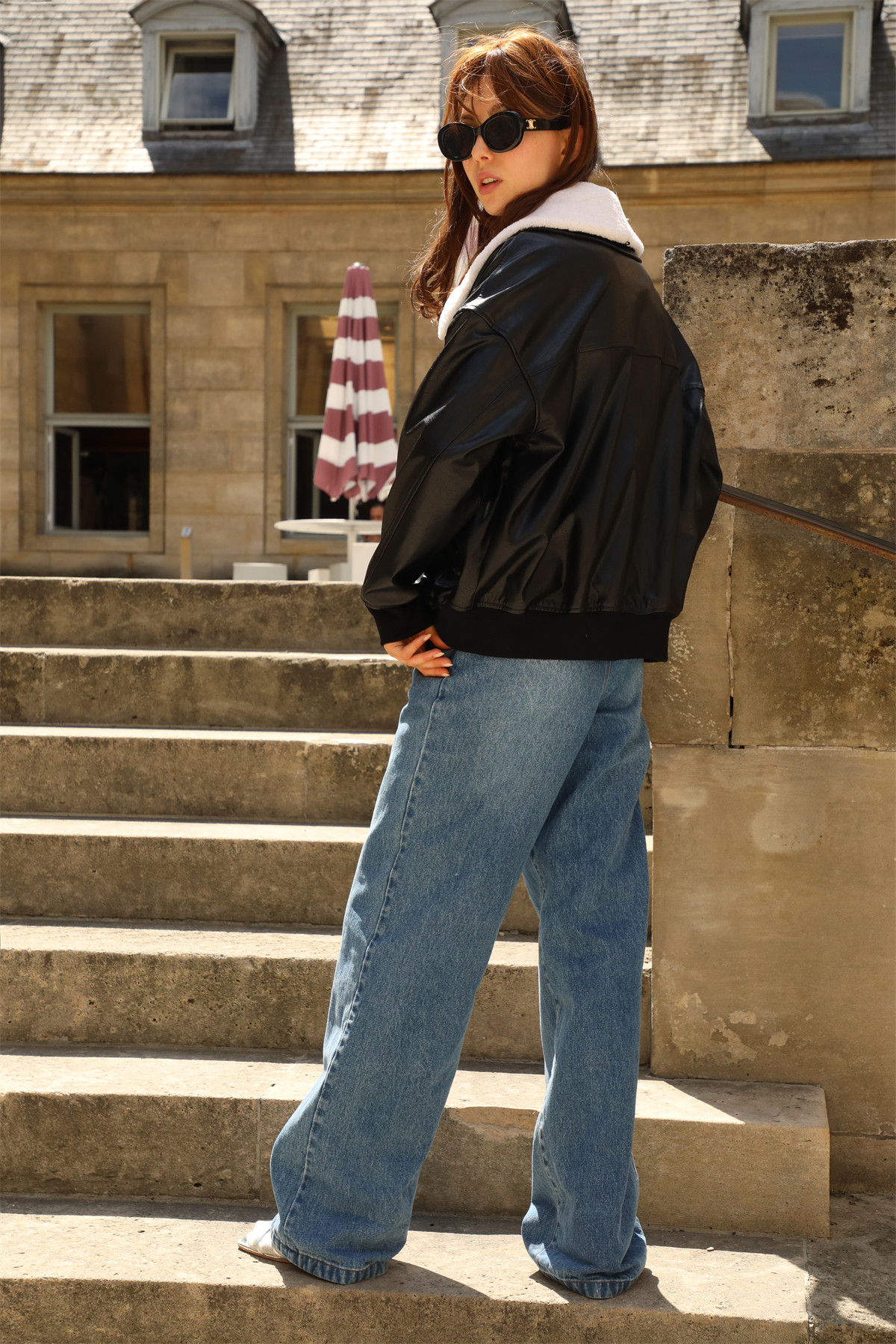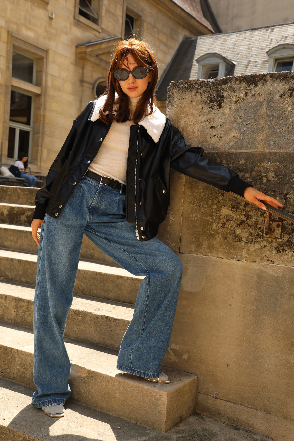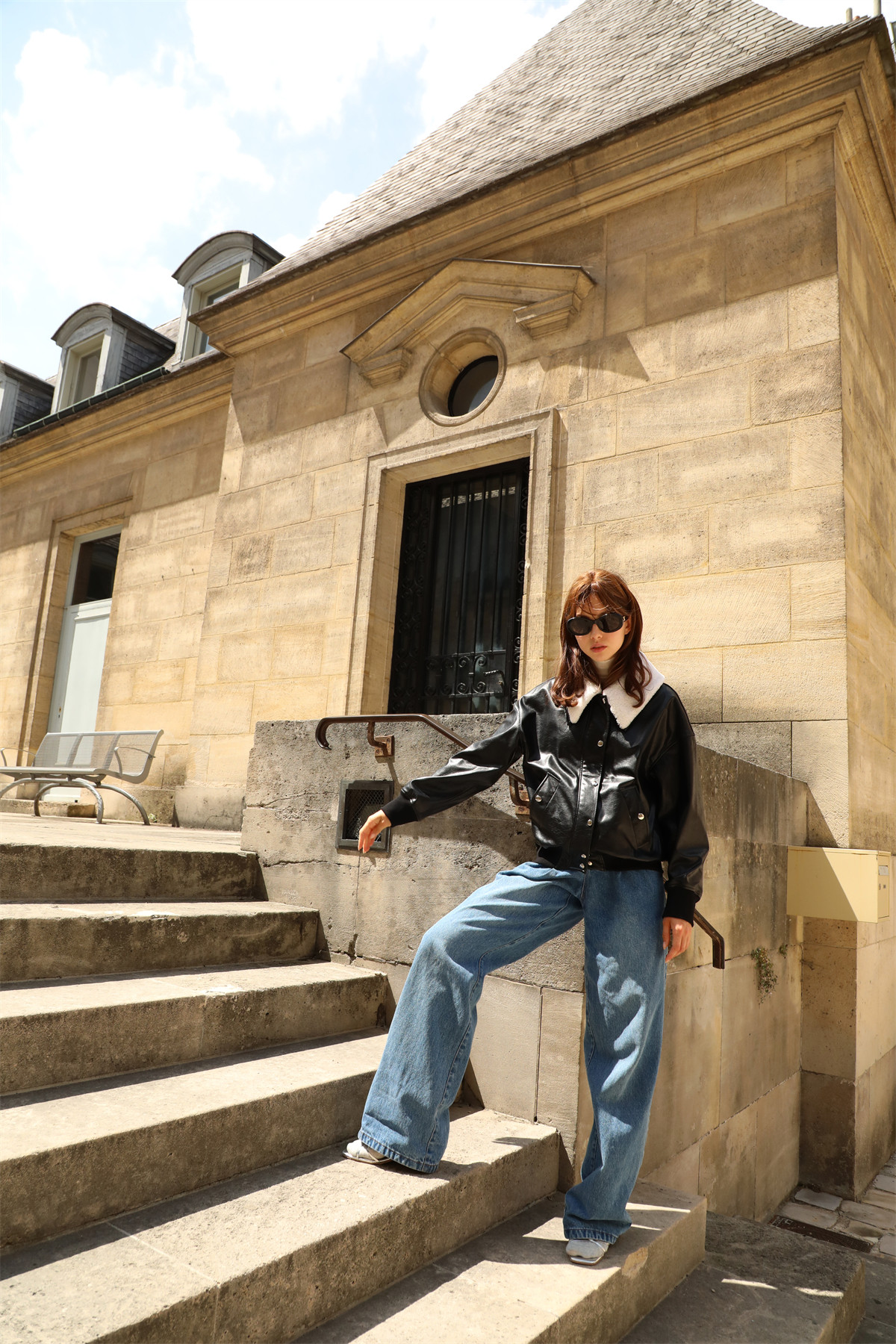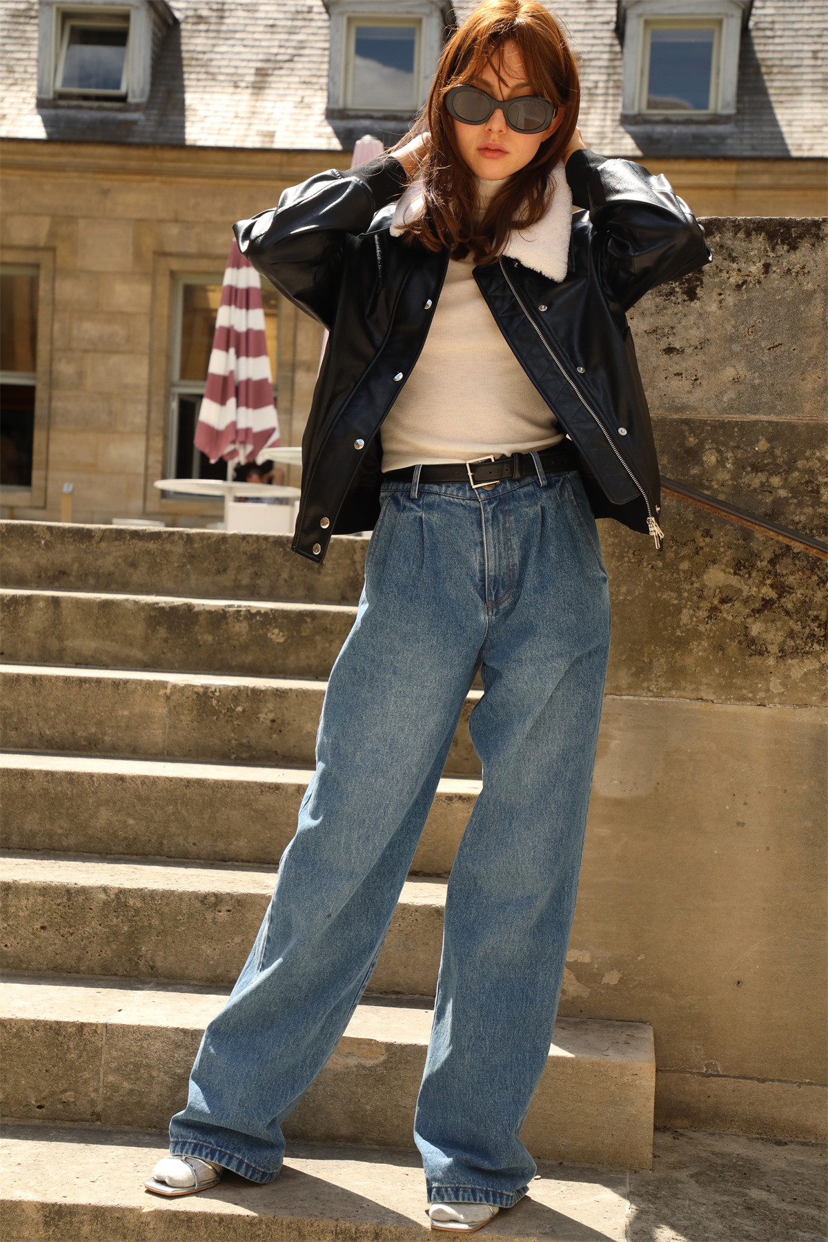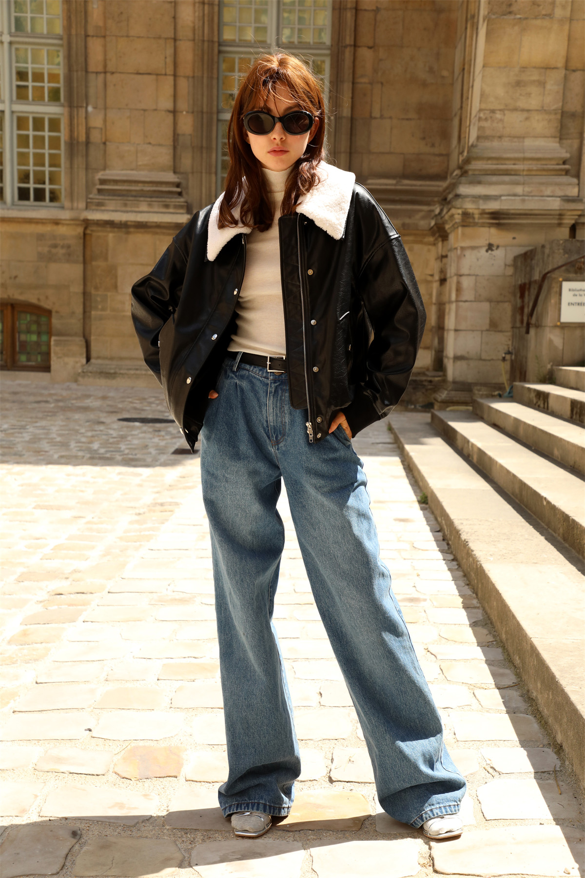 超JI帥氣的皮夾克。也下血本采用了皮毛一體的小羊皮領子,