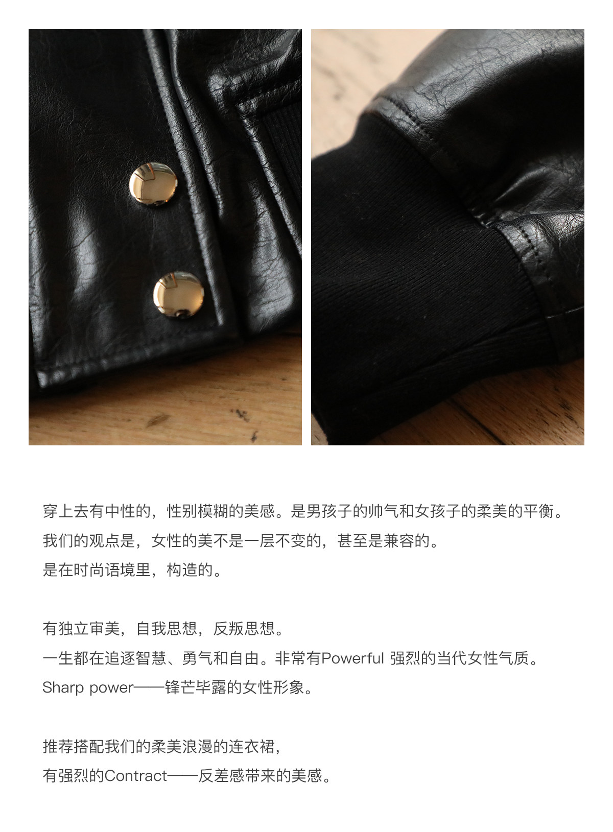 推薦搭配我們的柔美浪漫的連衣裙,有強烈的Contract——反差感帶來的美感。