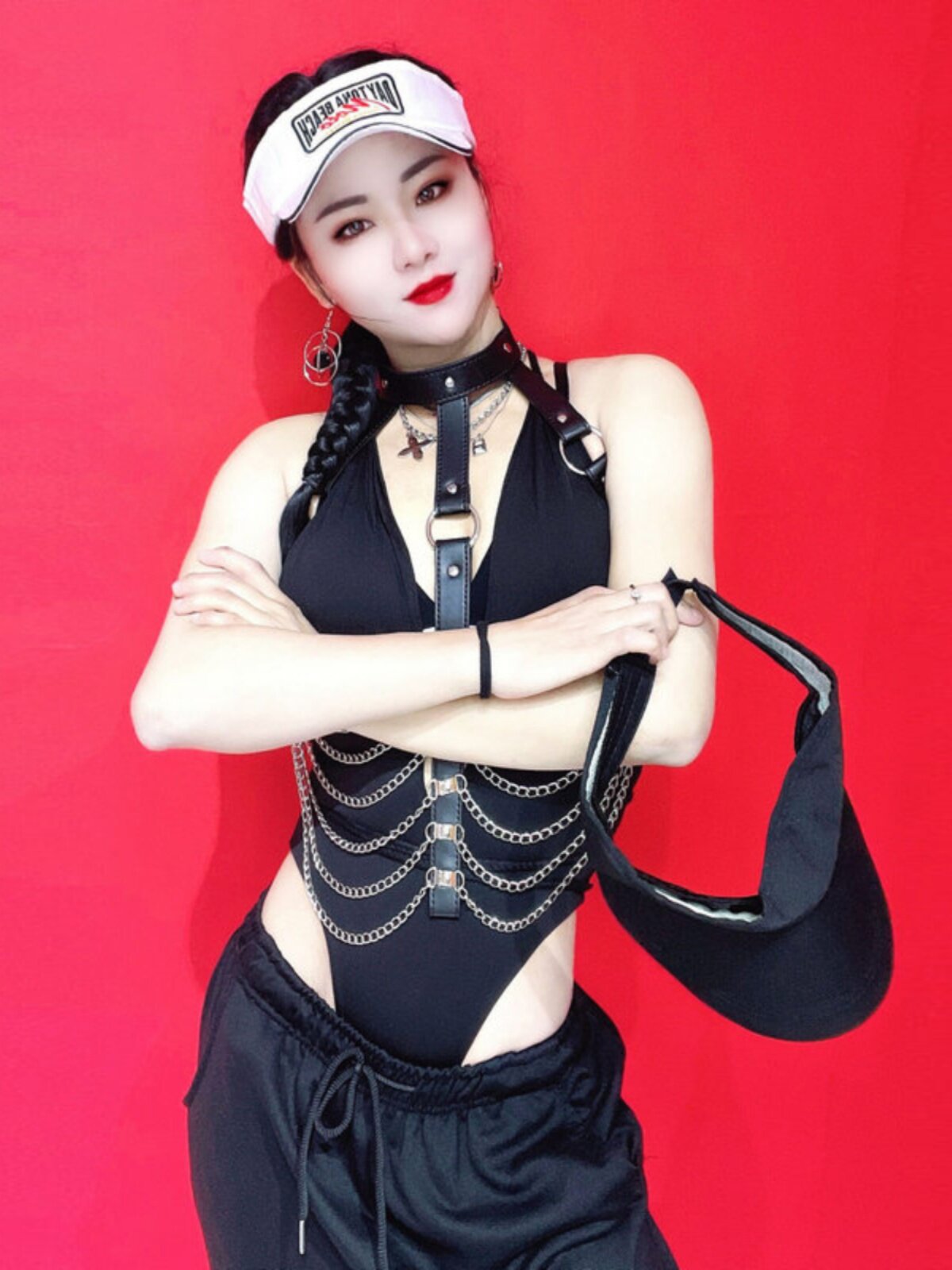 金屬鏈條 性感高叉泳衣套裝
