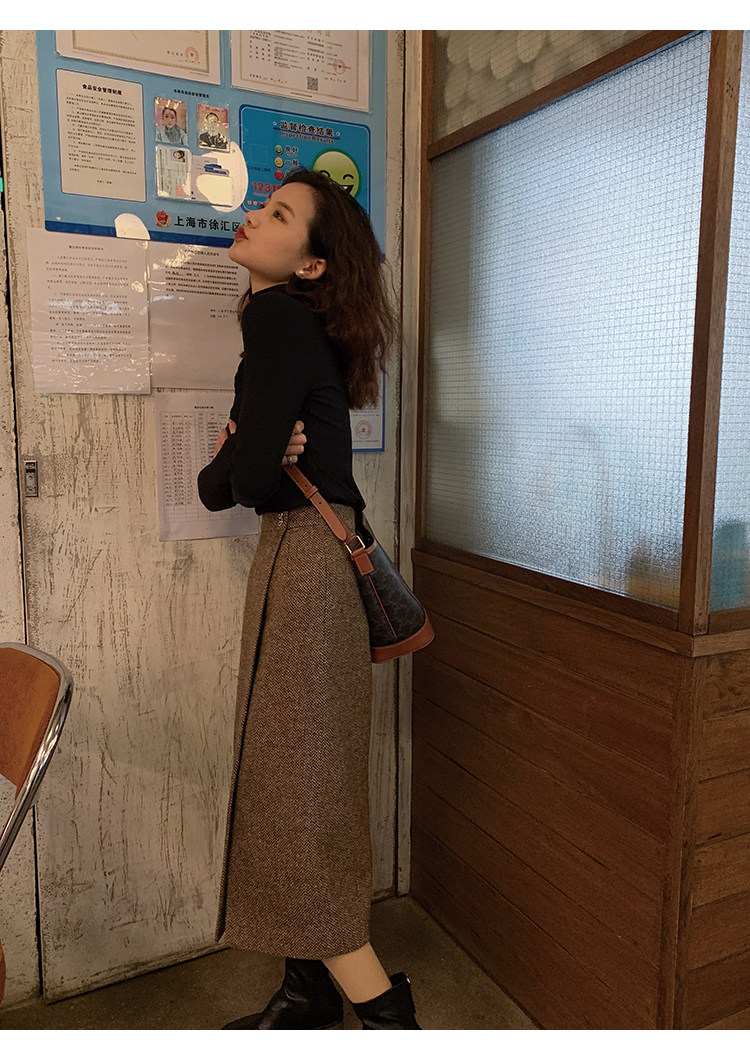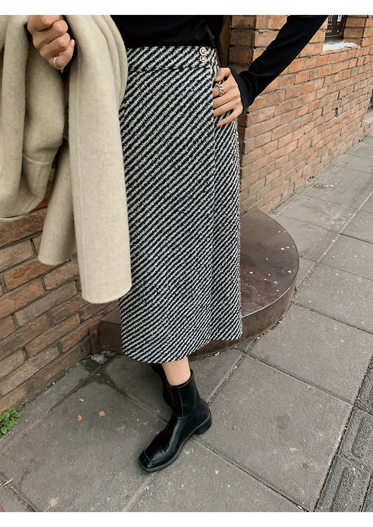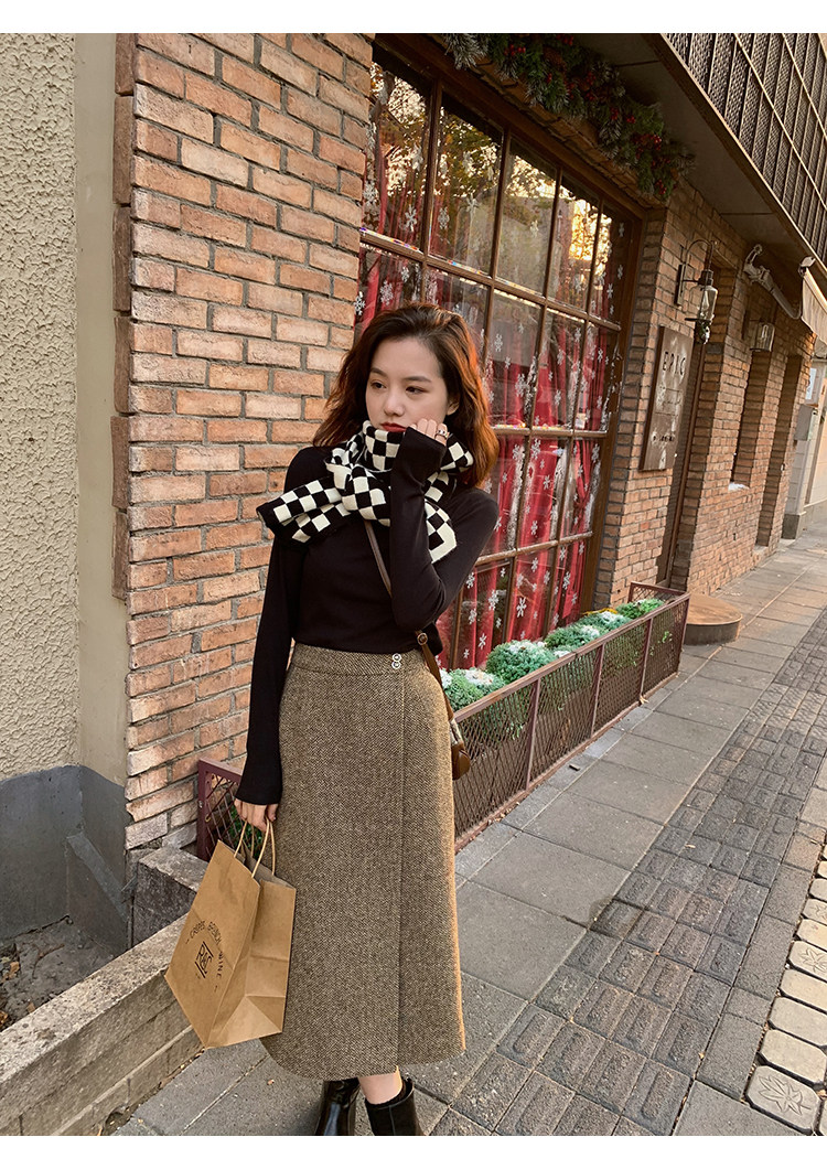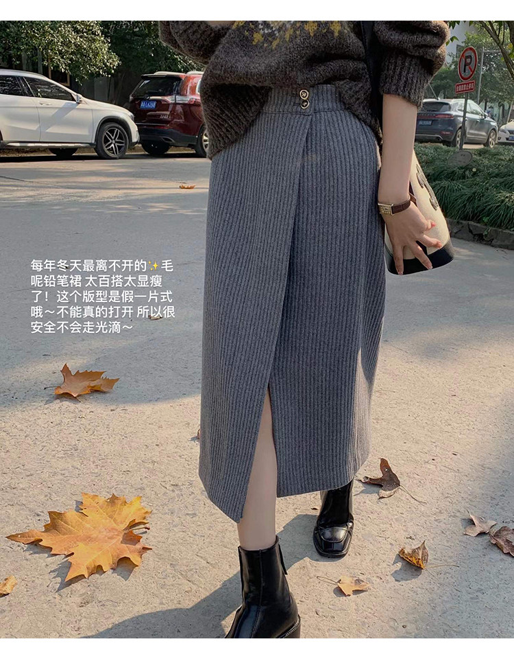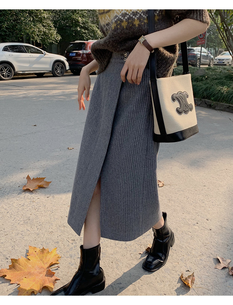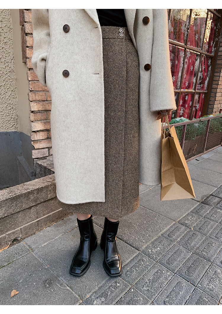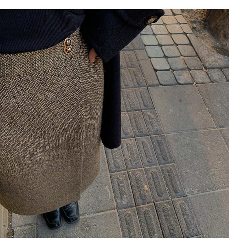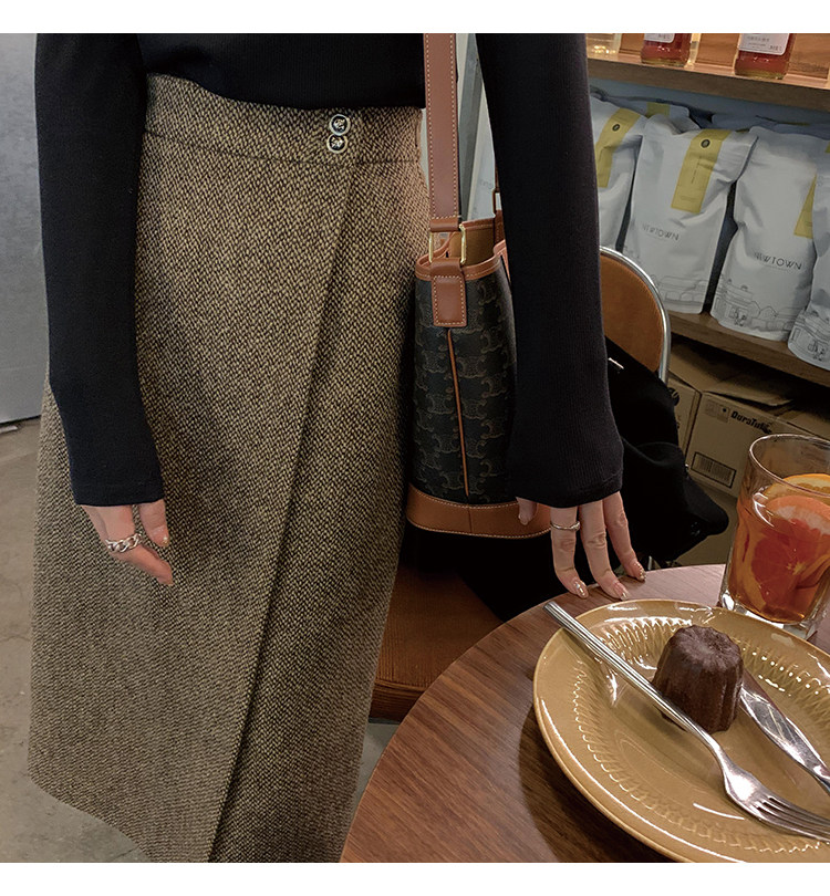 屬于是極具溫暖感的圍裹式羊毛筒裙~