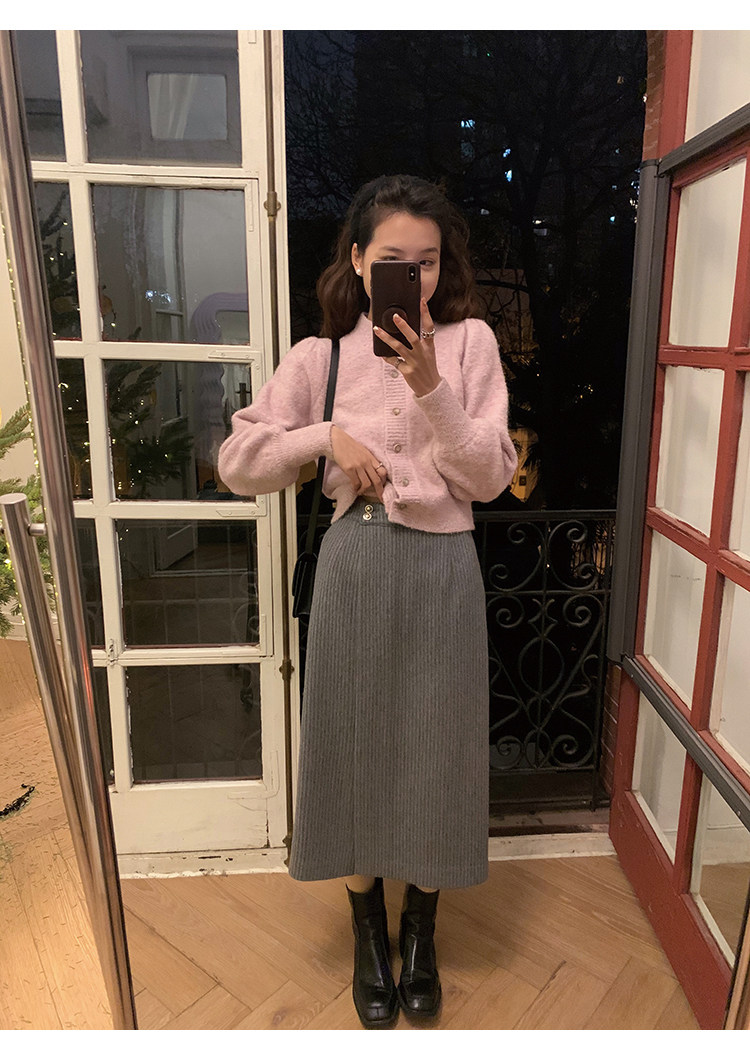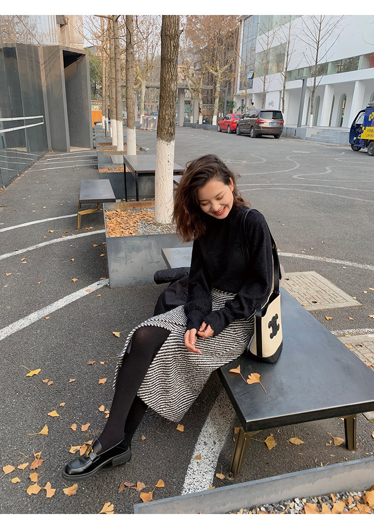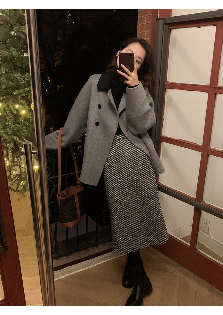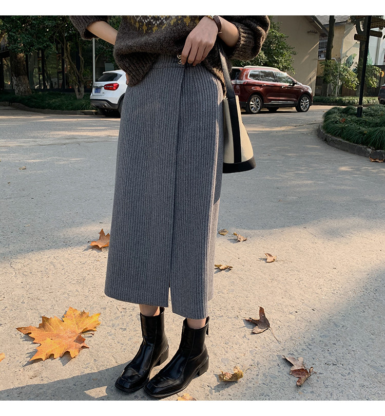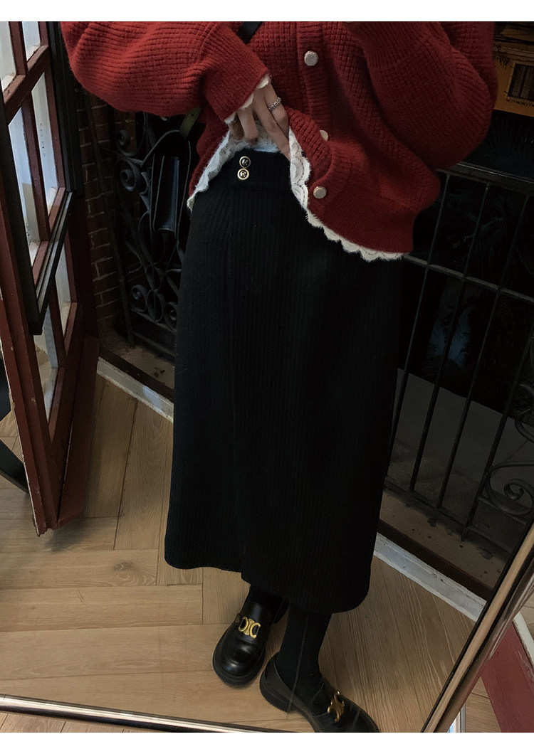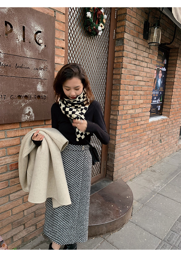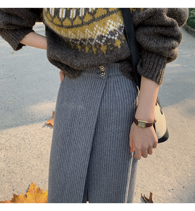屬于是極具溫暖感的圍裹式羊毛筒裙~