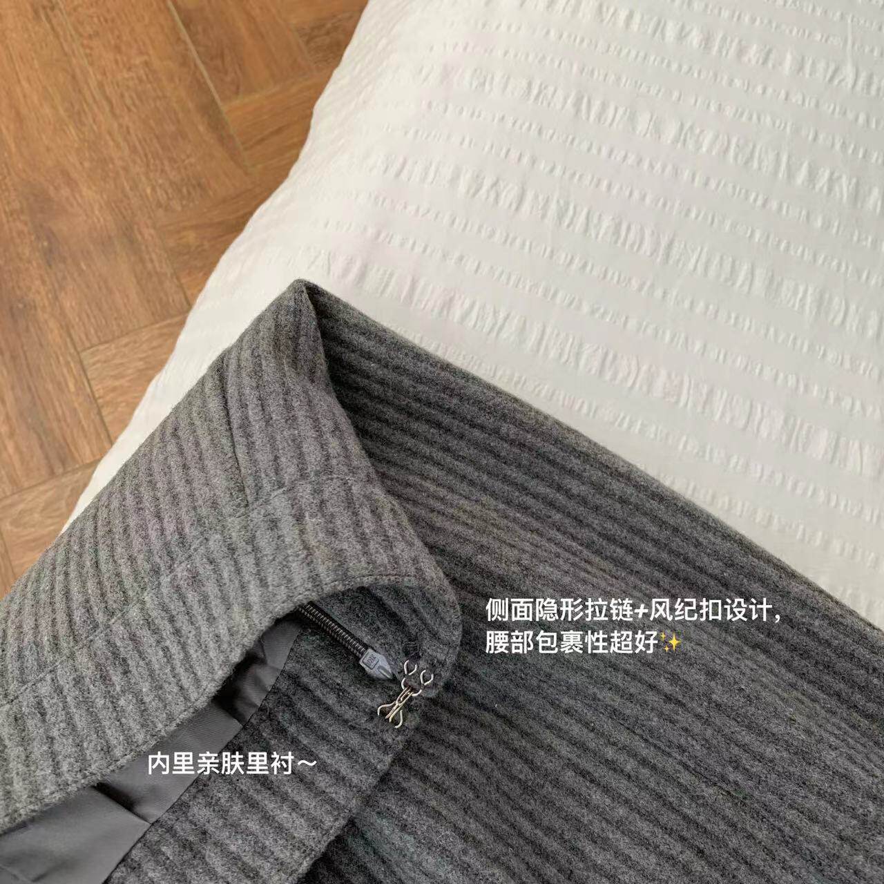 再有坑條面料加持 下半身的線條感就是第一眼滿意的程度~