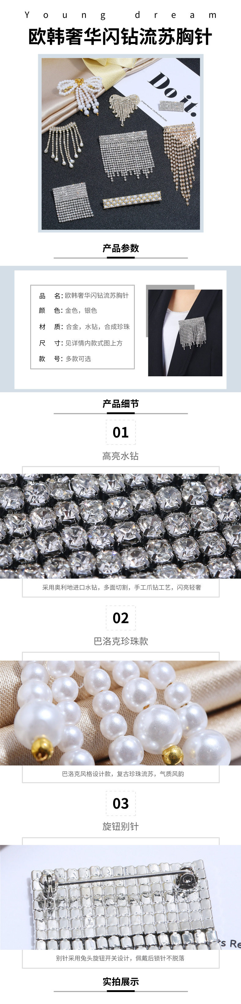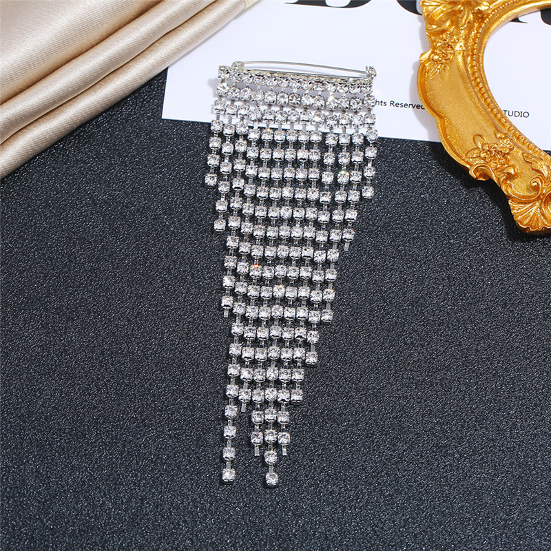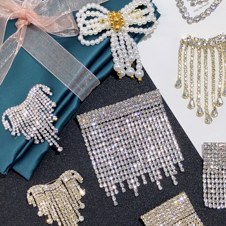 輕奢百搭的歐韓風格閃鉆流蘇胸針,原創設計款式,手工爪鉆工藝。