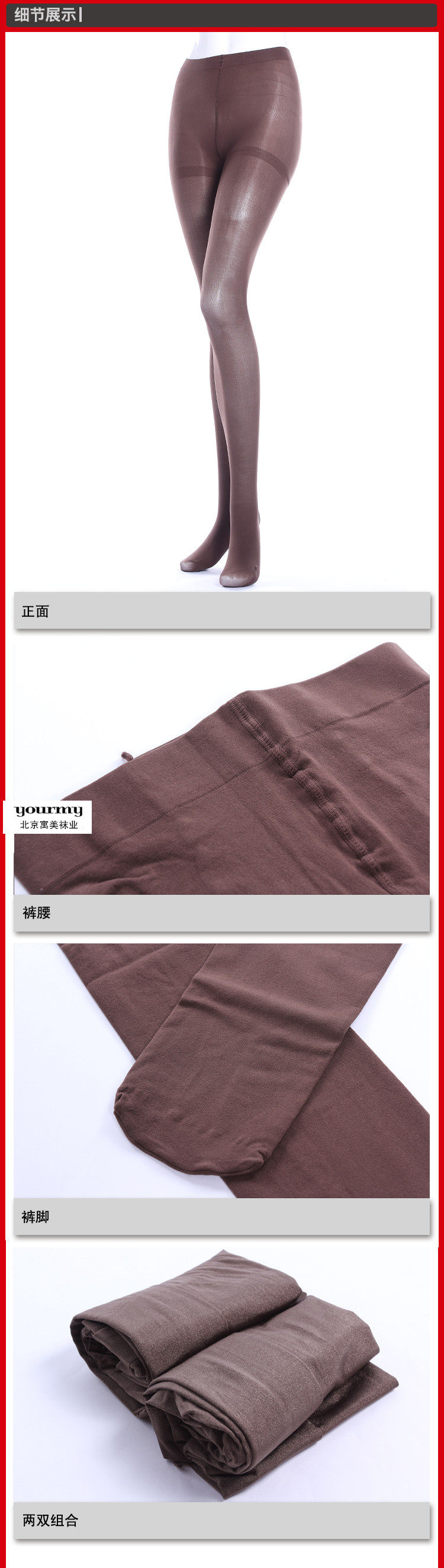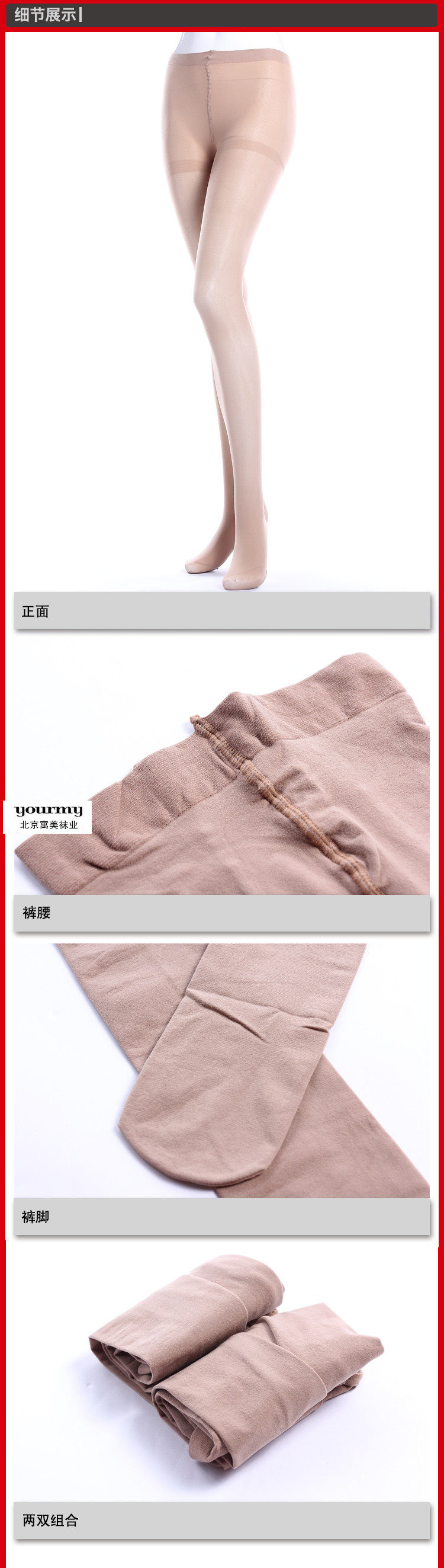 特點:采用意大利進口設備,選用優質苞芯紗高密度織造而成。平縫工藝,70D單加襠制作,適合胖瘦適中的女性穿著。細膩質感,薄厚適中,彈力好,穿后無褶皺,增添腿部美感。