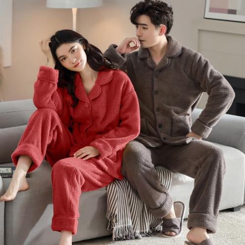 情侶睡衣秋冬季情侶款珊瑚絨女加厚加絨可外穿出門男士家居服冬天