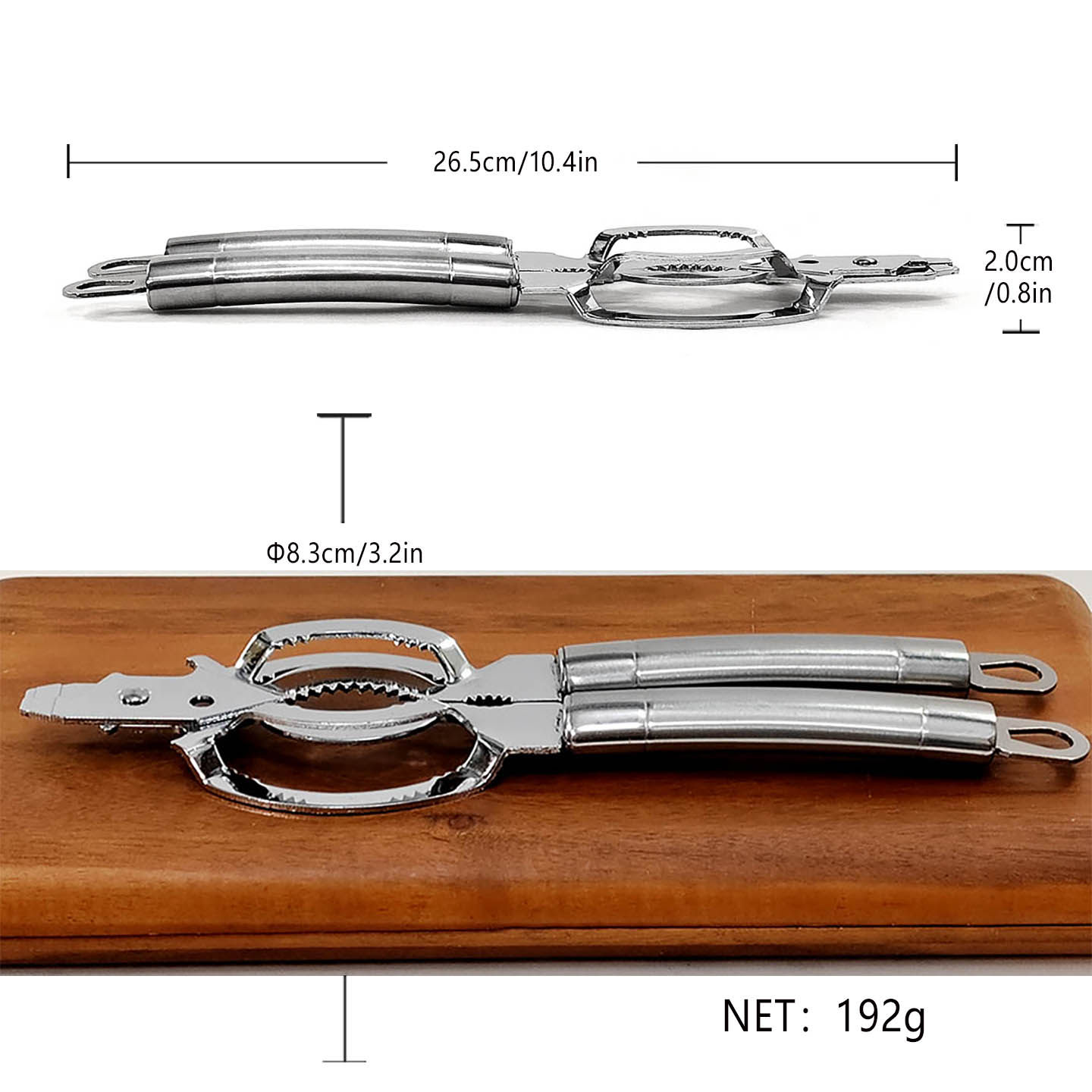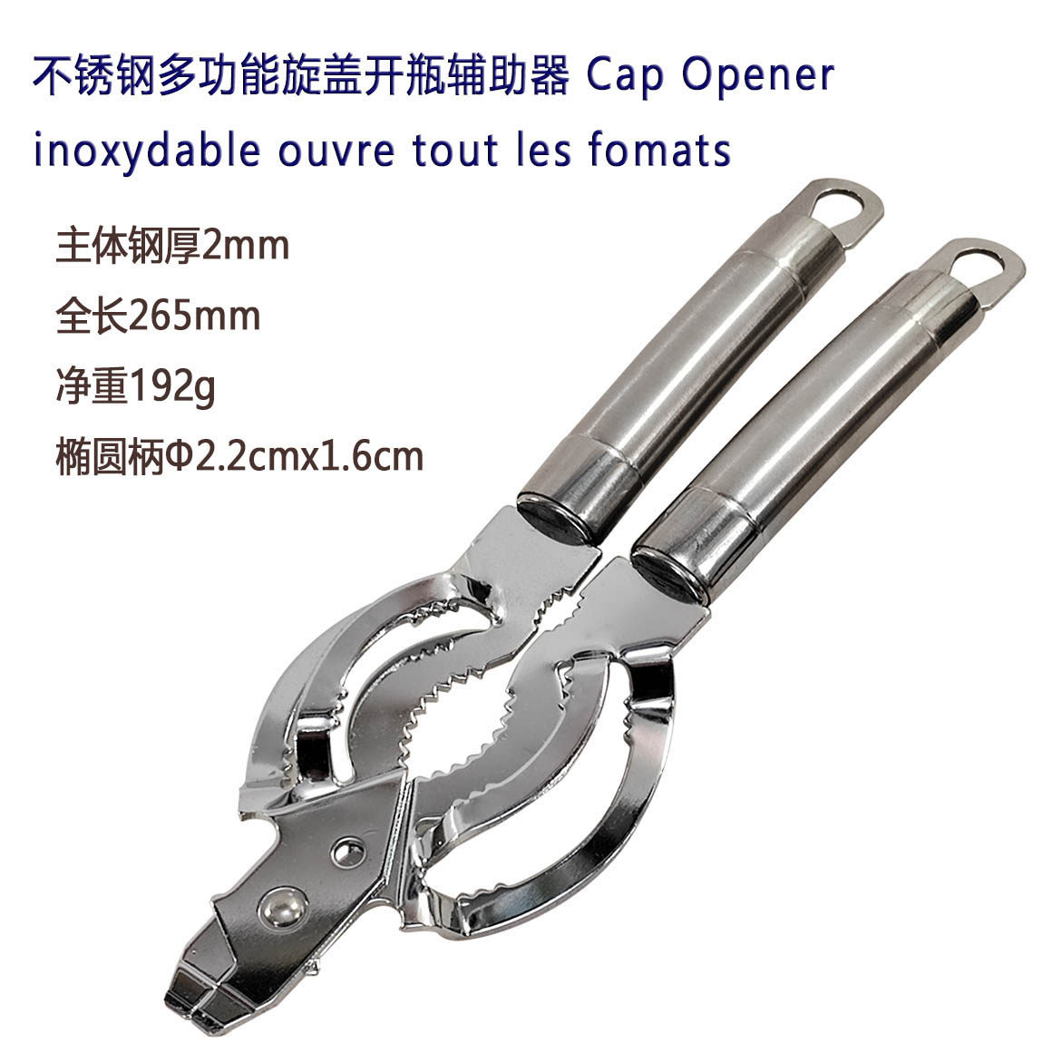 適合瓶蓋的直徑:0.5—12cm(厘米),一個人一手把握的話差不多最大8厘米,如果兩手握把柄,另一人幫忙扶住的話,可以支持到12厘米直徑。