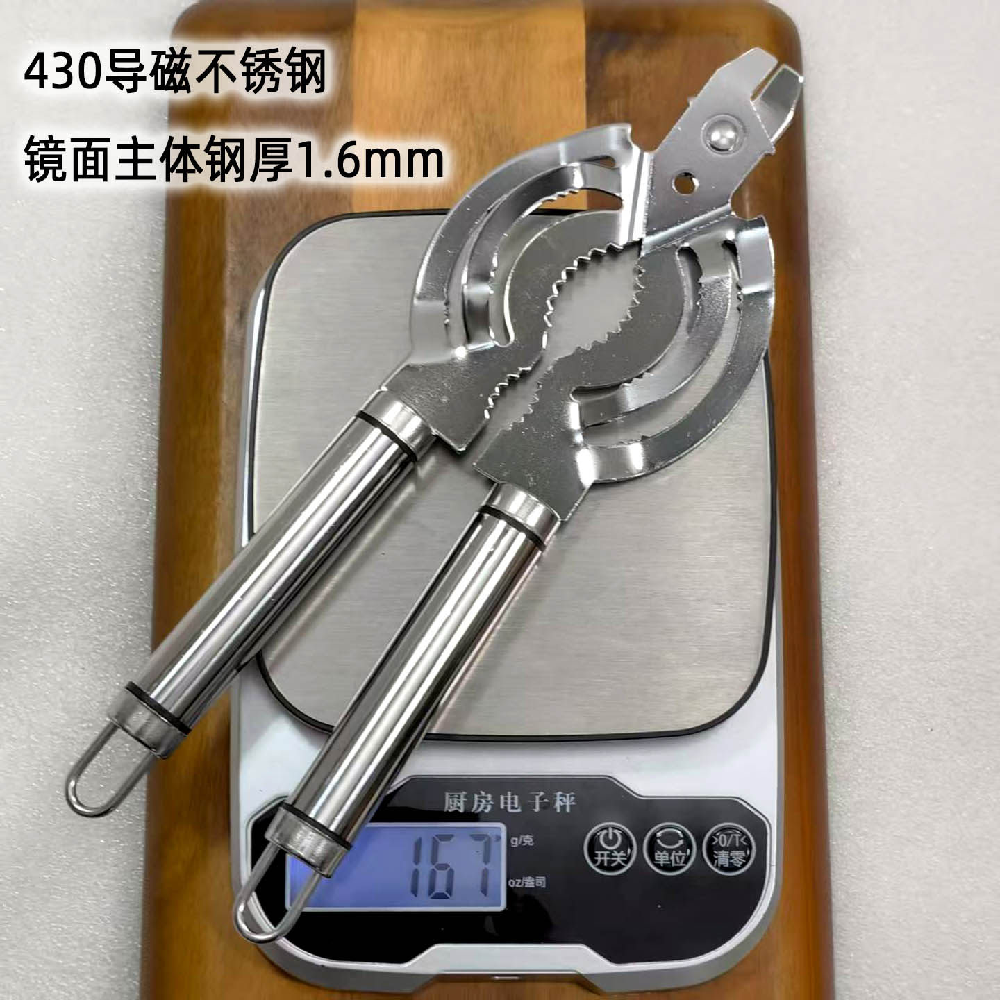 材質:1.6mm鍍鉻(厚鋼砂光面)430不銹鋼,磁鐵能吸,與壹元硬幣厚度相差無幾,圓柱鋼管柄1.87cm直徑-導磁430不銹鋼,主體與柄均