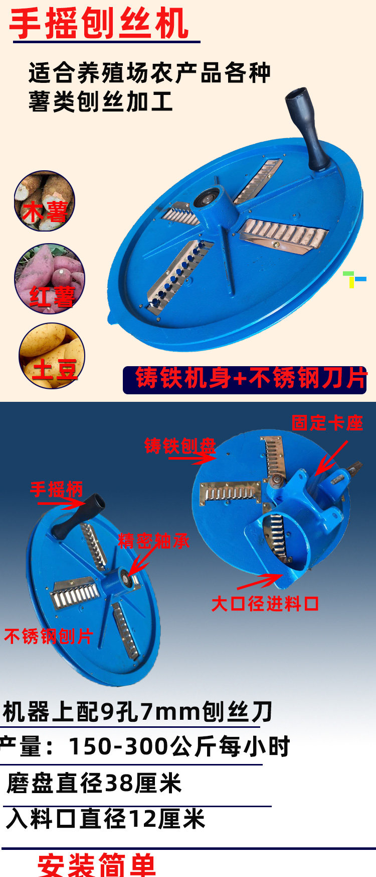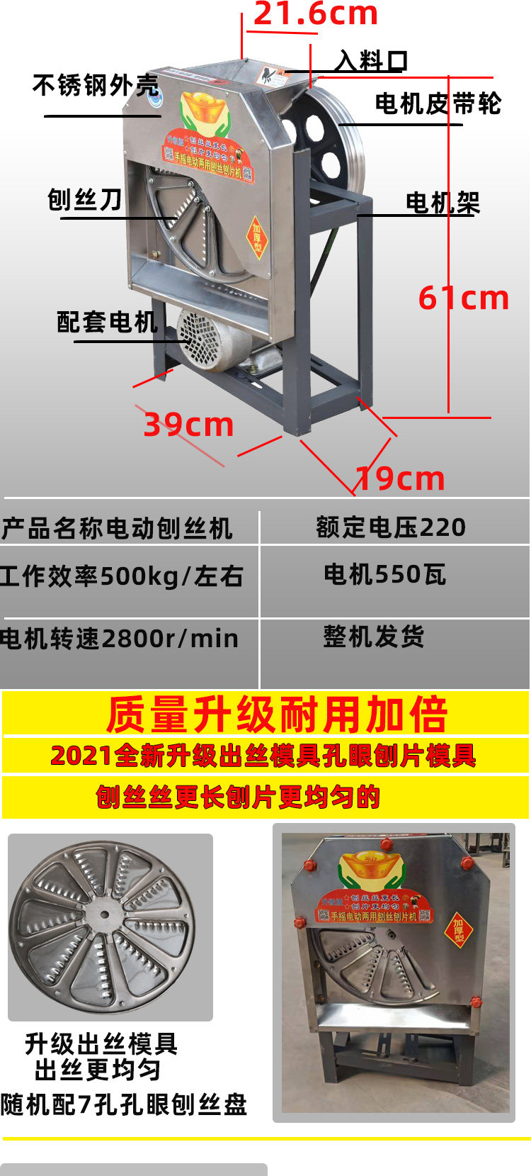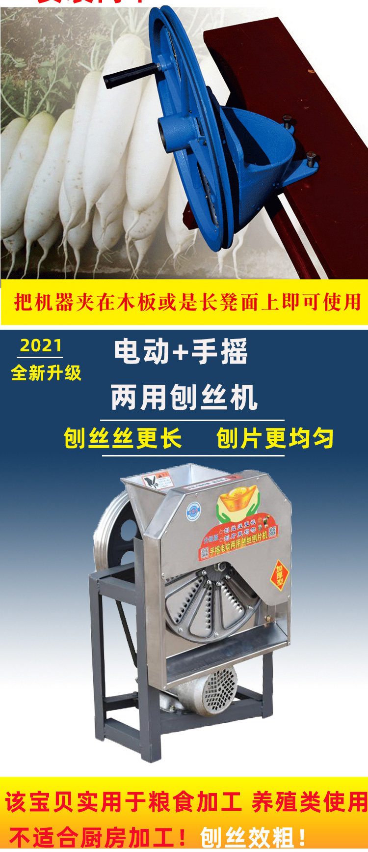 實用糧食加工養殖類使用,不適合廚房使用(刨絲較粗)