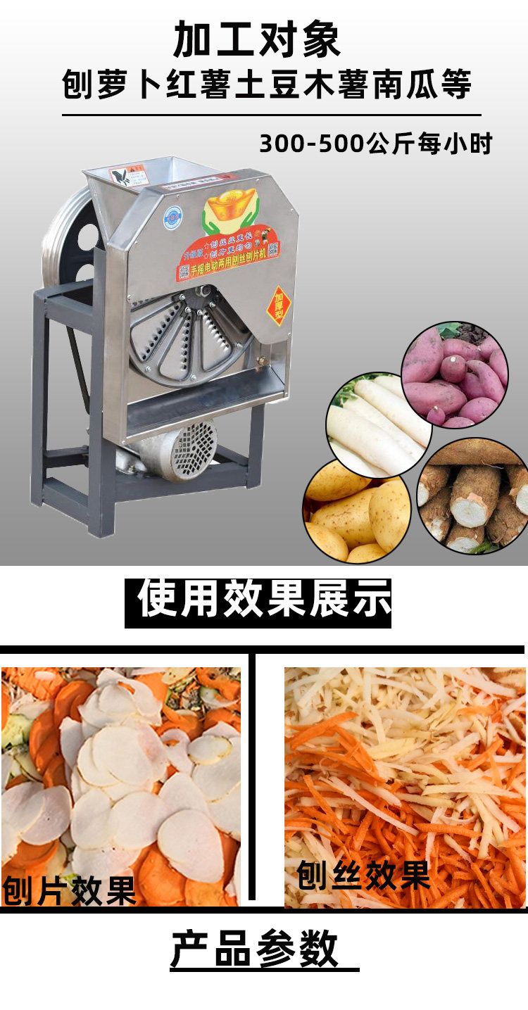 適用范圍:蘿卜 土豆 木薯 芋頭 南瓜 黃瓜 等瓜果類刨絲刨片