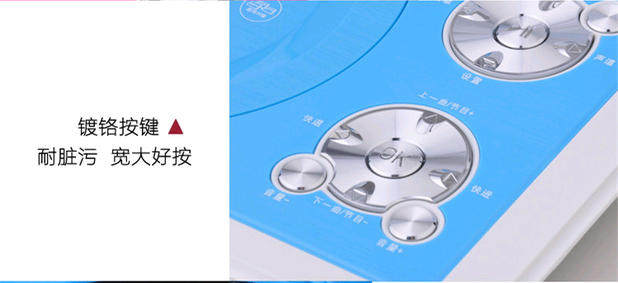 2、本機配有標準USB輸入接口,還配有三合一復合卡座接口,支持播放U盤,MMC、SD、MS這些存儲設備RM,RMVB,AVI(DIVX編碼),VOB,等格式視頻,JPG格式圖片,WMA,MP3格式音樂