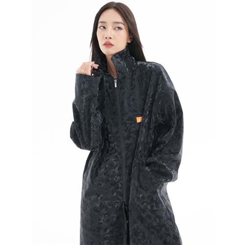 Nought Group秋冬黑色豹紋迷彩暗紋質感PU皮衣中長款風衣防風外套