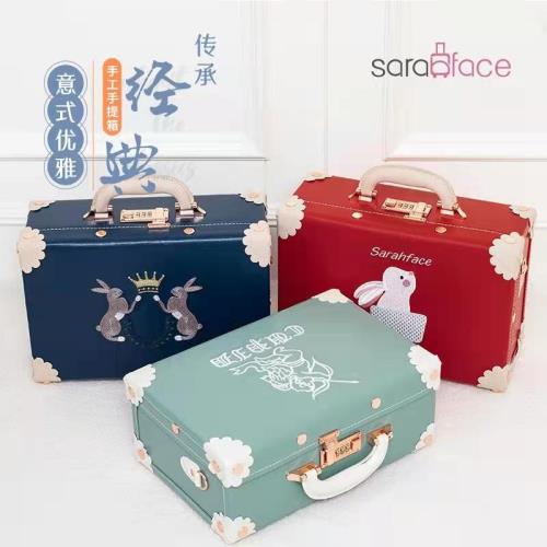 Sarah face復古手提箱刺繡女包手工化妝箱可愛小行李箱密碼箱皮箱