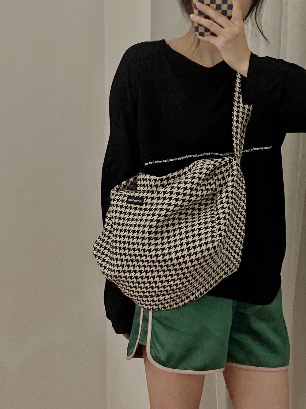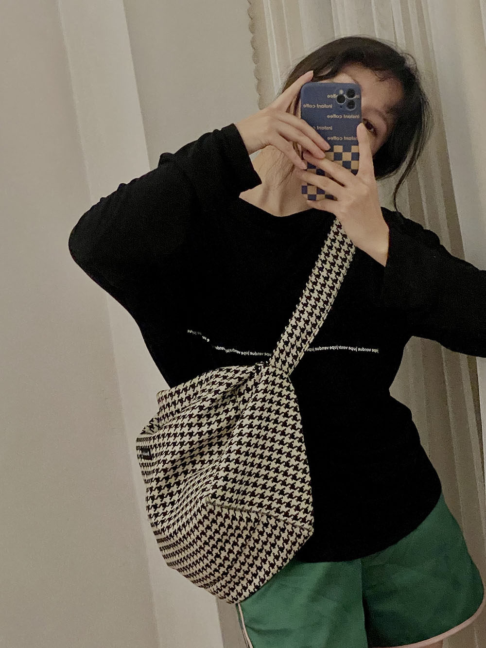 千鳥格色織提花面料(面料厚實,時髦復古,怕掉色買千鳥格~暫時沒有發現缺點哈哈)