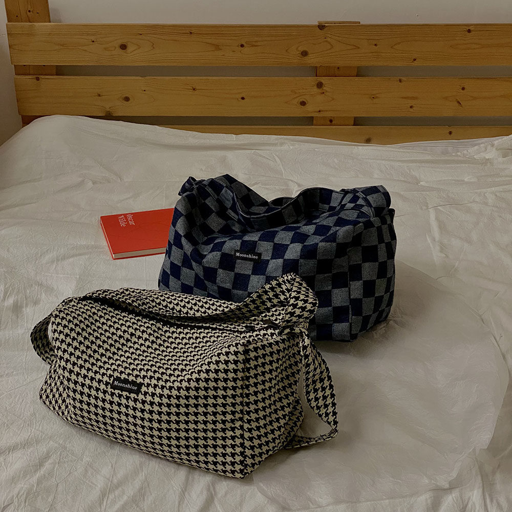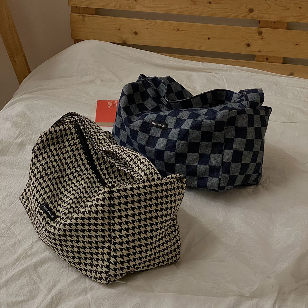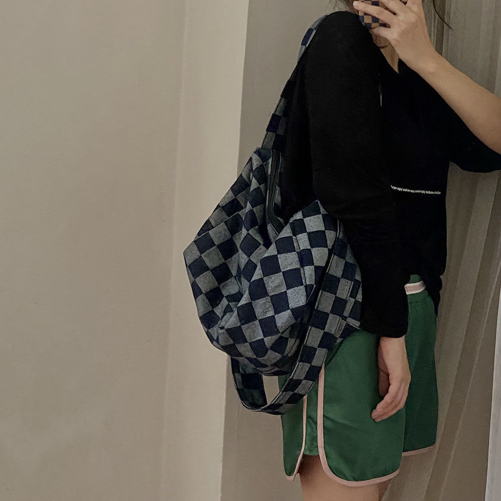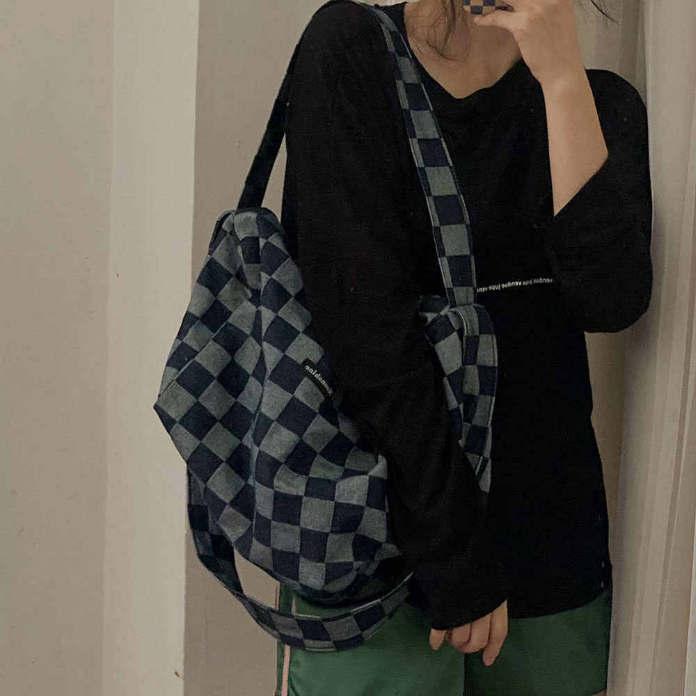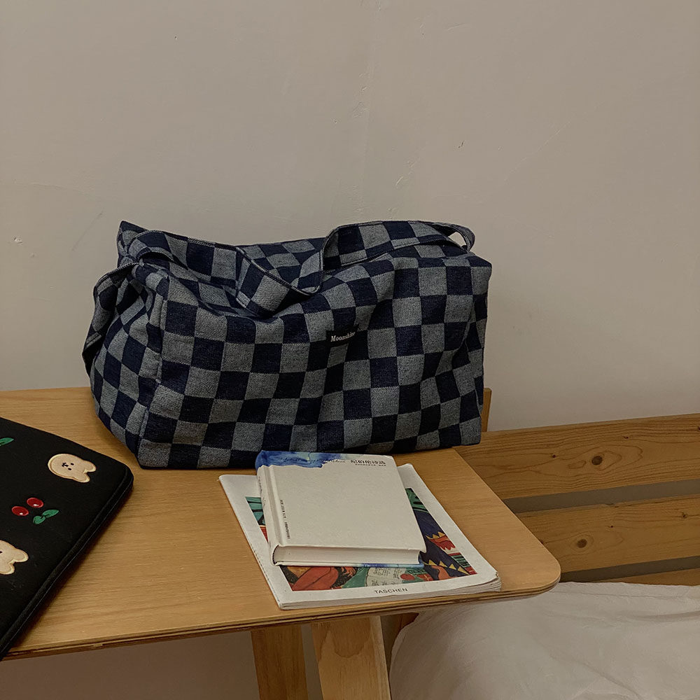 本來因為掉色會增加太多的售后煩惱我們考慮用很淺色的牛仔格子料做大貨,但是效果不及深色好,所以還是做的深色。