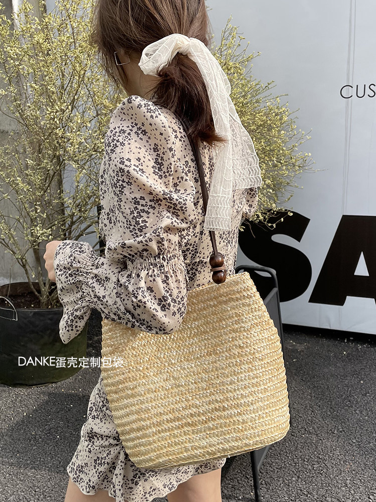 ins韓版設計感單肩草編包