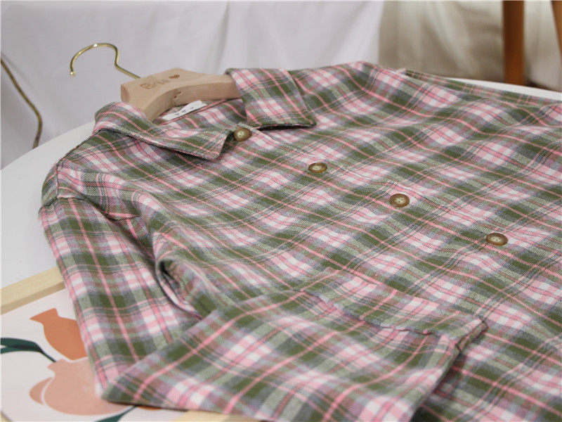 苔蘚綠淺色+粉色,復古系。每個顏色搭配都恰到好處,格子控要入啦!上衣可當襯衫外穿也很OK