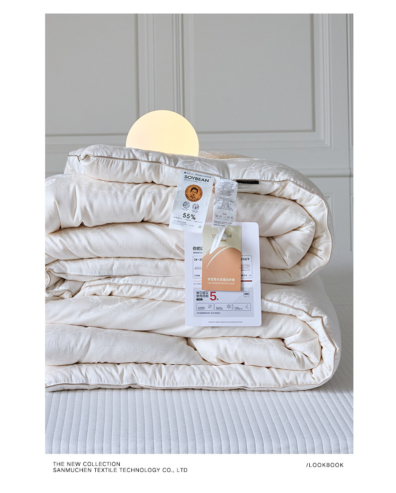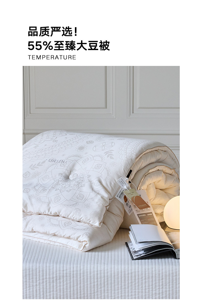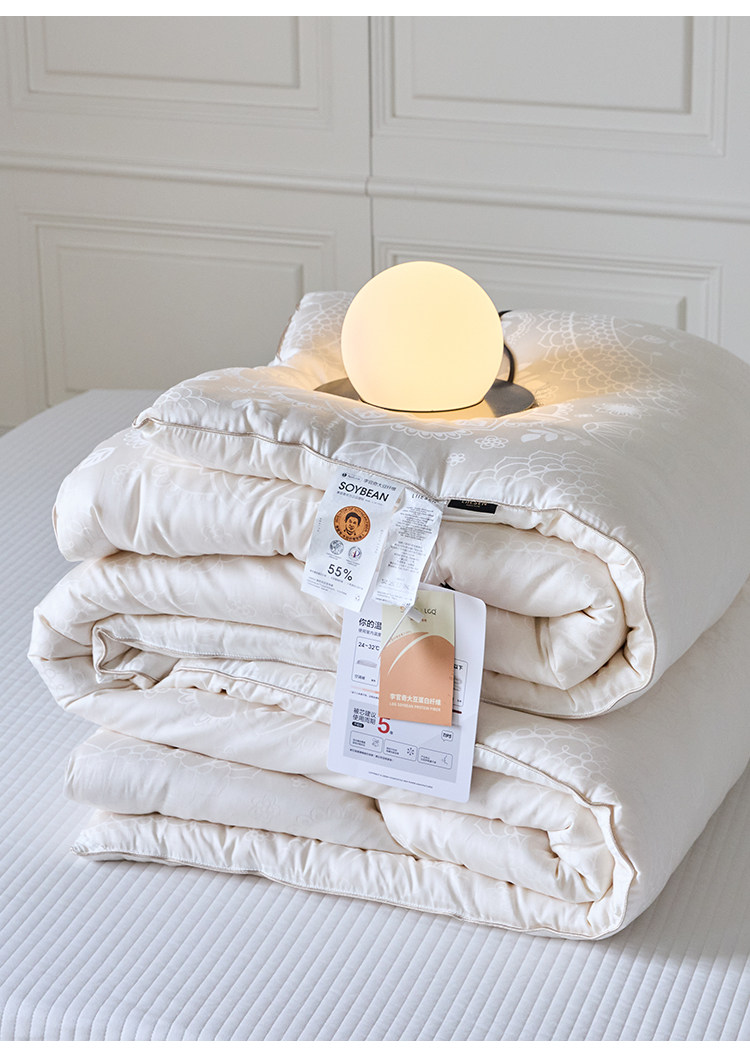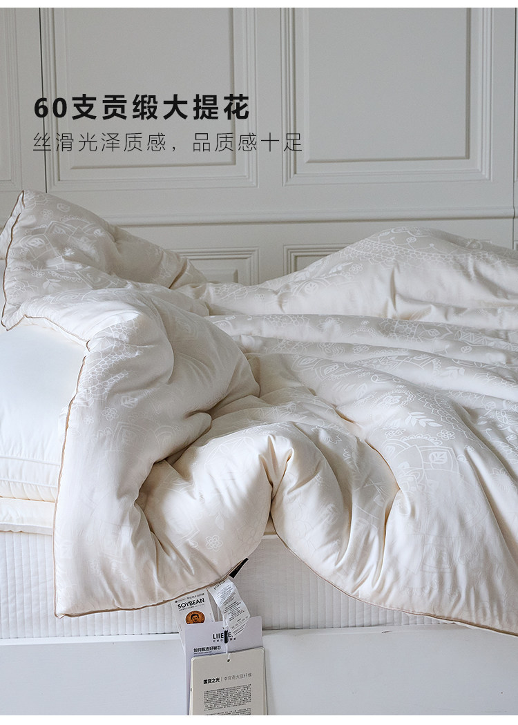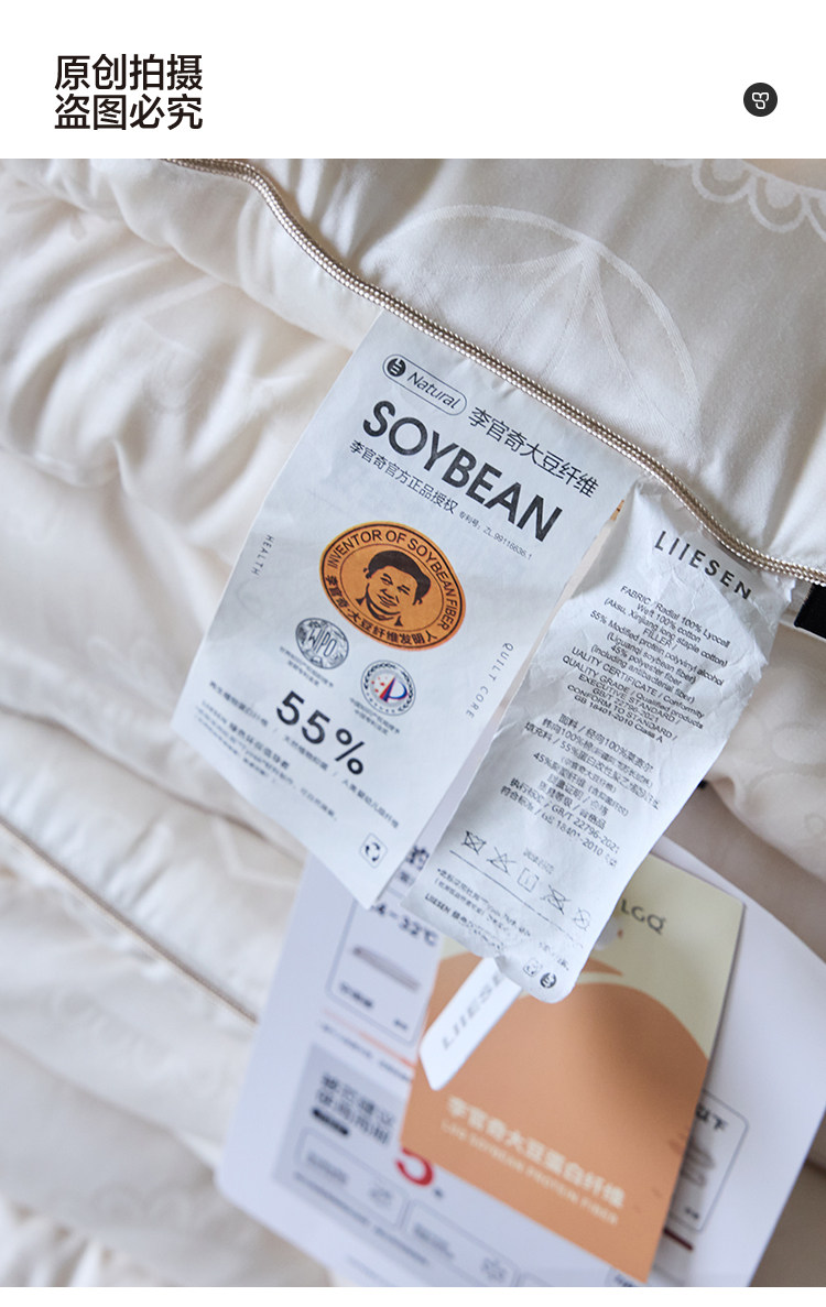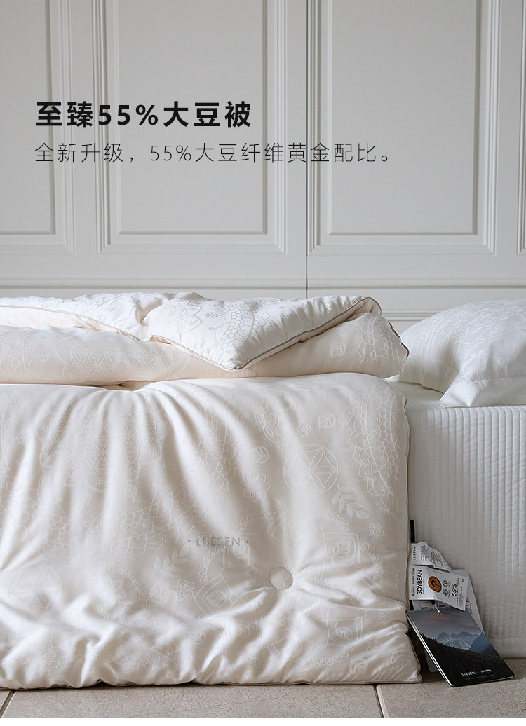 填充: ①55%至臻大豆被:55%蛋白改性聚乙烯醇纖維(李官奇大豆纖維)+45%聚酯纖維