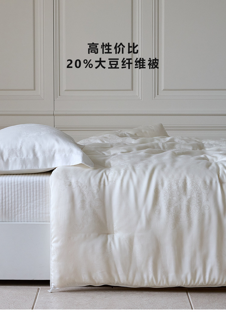 ②20%鉑金大豆被:80%聚酯纖維+20%聚乙烯醇纖維(含有蛋白)