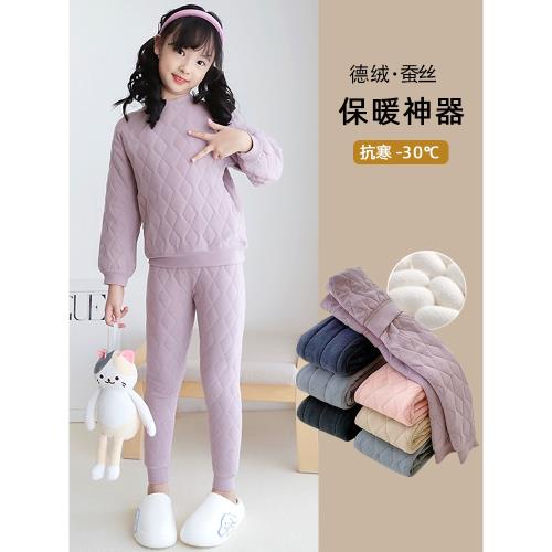 兒童保暖內衣套裝加絨加厚中大童德絨三層夾蠶絲棉衣棉褲校服神器