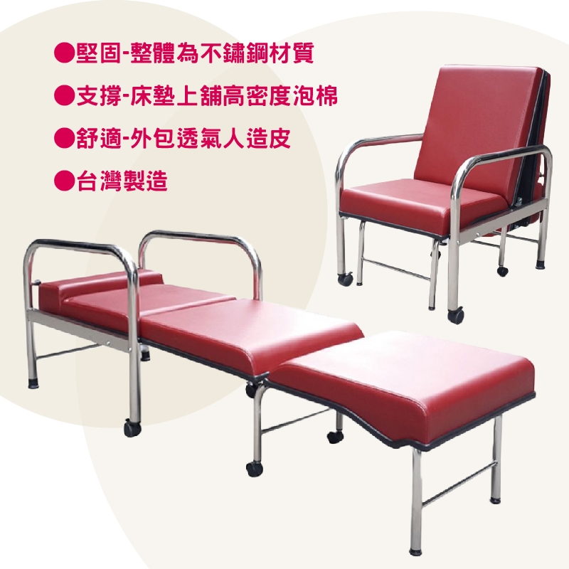 材質:整體為不鏽鋼材質,床墊上舖高密度泡棉,外包透氣人造皮