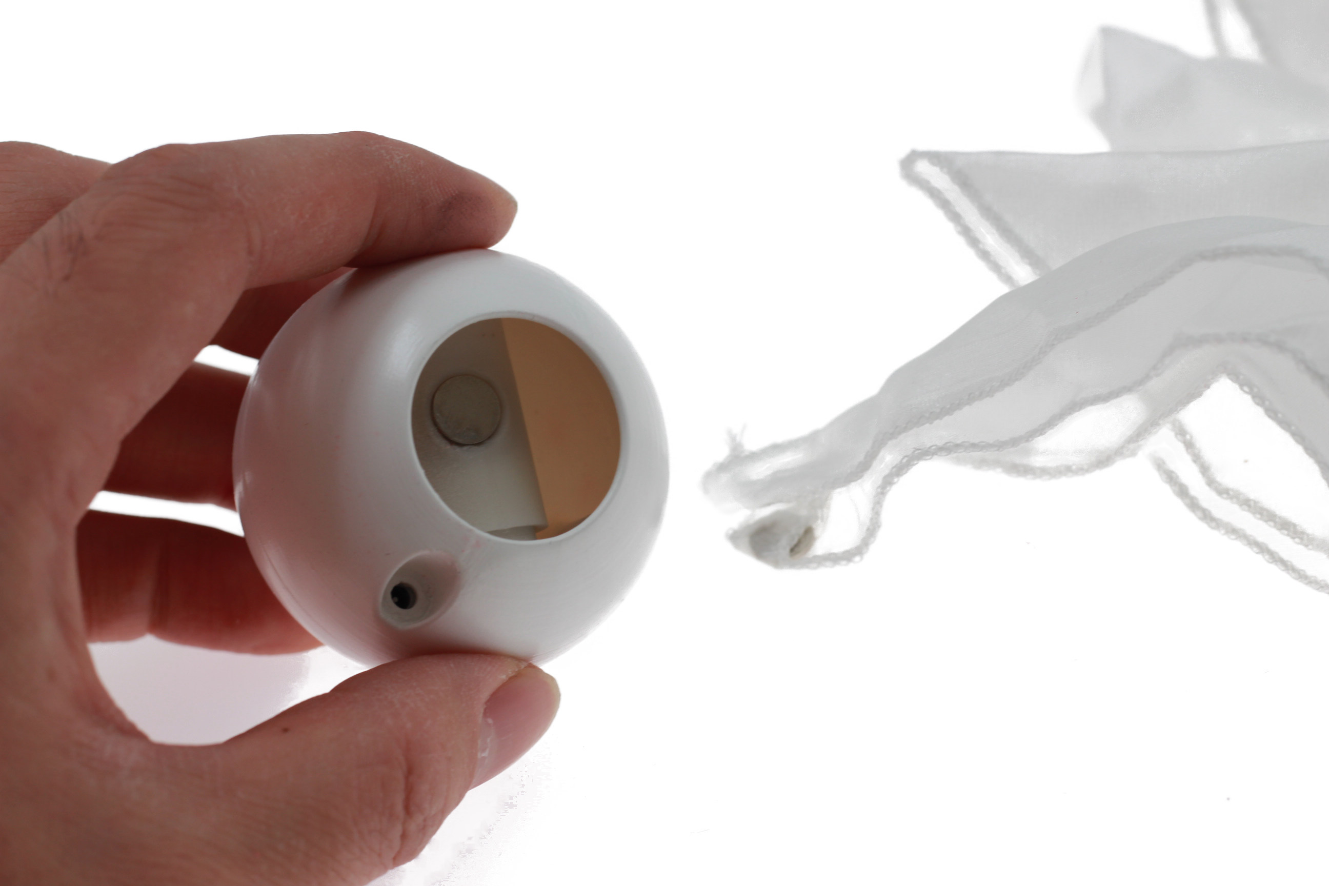 3.絲巾磁鐵門子,絲巾上附有一個小磁鐵,不用對準角度,碰到球中卷軸中間任何部位即可吸牢(不象其他同類產品要對準球中卷軸上的磁鐵部位),絲巾回縮迅速/緩慢 過程不卡殼.