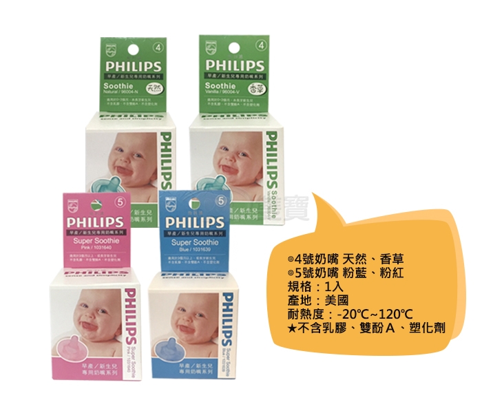 請注意、飛利浦4號奶嘴因美國原廠端生產線不同的關係,奶嘴會出現SOOTHIE或是PHILIPS AVENT兩款字樣,皆是原廠正品出貨請不用擔心,也可檢視外盒台灣總經銷+內袋雷射防偽貼紙+清楚的批號效期標示等,就是代表美國授權台灣的商品,詳請也可以至原廠官網參考原廠官網說明。兩款字樣原廠隨機出貨,如果無法接受,請您不要訂購,謝謝。