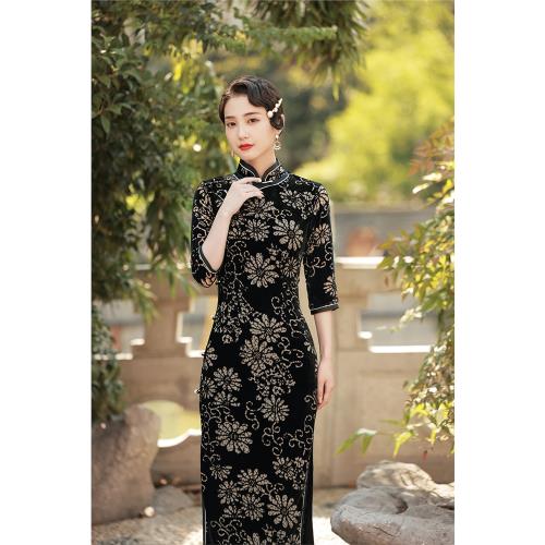 珍愛2025春冬真絲爛花綃八扣復古風情旗袍時尚顯瘦氣質連衣裙穿搭