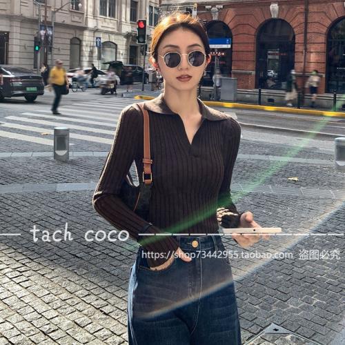 法國Tach Coco針織衫女秋冬洋氣設計感小眾V領毛衣修身打底上衣