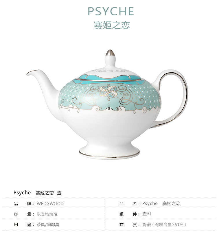 Psyche(賽姬之戀)系列,產地:英國,2008年,寓意永恒的愛 以邱比特與賽姬之間的浪漫愛情為靈感,輔以18世紀圖案為基礎制作。清新俐落的粉紅色裝飾,或深淺交錯的翡翠綠,白金勾勒邊飾,美妙交織的緞帶,象征了無盡的愛,特別適合情侶、愛人間的禮物。