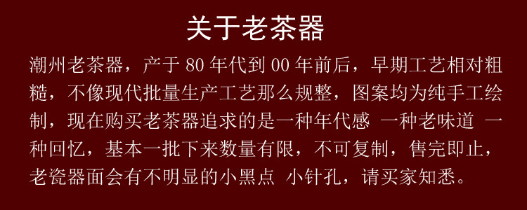 【注】:早期老瓷器工藝相對粗糙,追求的是一種年代感 一種老味道 一種回憶,瓷器面會有不明顯的小黑點 小針孔,請買家知悉。